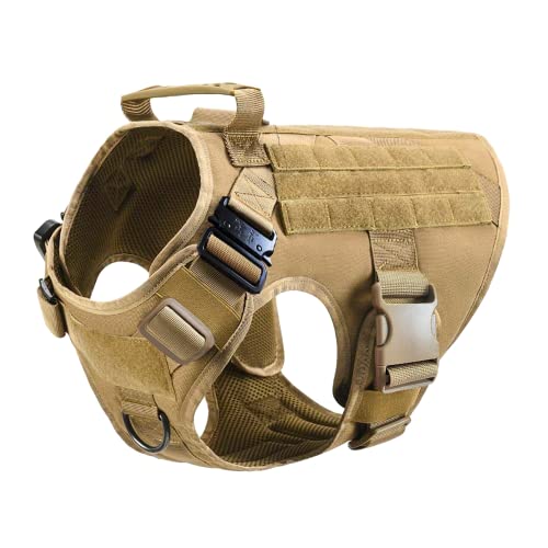 Für aktive Hunde und ihre Menschen: Dieses Tactical-Geschirr ist ein echter Allrounder! Aus robustem 1000D Nylon mit weicher Polsterung - bequem für deinen Hund, egal ob beim Wandern, Joggen oder Training. Mit praktischem Griff oben, um deinen Hund schnell zu führen oder zu sichern. Das MOLLE-System bietet Platz für Beutel oder Leuchtmarker. Vier Schnellverschlüsse machen das An- und Ausziehen super einfach. In Tarnfarben und anderen Farben erhältlich, in verschiedenen Größen für kleine bis große Hunde. Perfekt für den Outdoor-Einsatz - dein Hund ist sicher unterwegs und sieht dabei noch richtig tough aus!