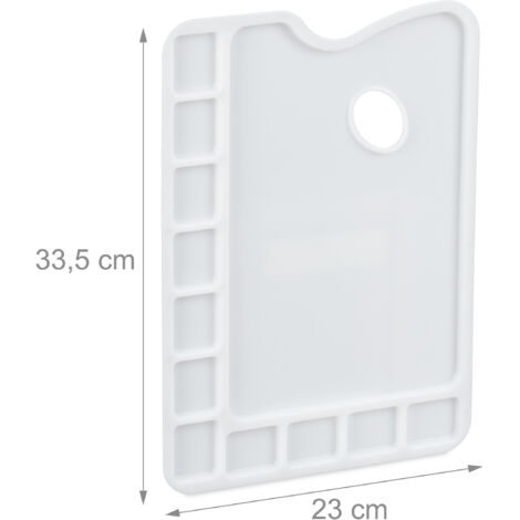 Wow, dieses 5er-Set Mischpaletten ist einfach perfekt für alle Malbegeisterten! Jede Palette hat 11 praktische Mulden zum Befüllen mit verschiedenen Farben und eine große Fläche zum Mischen. Aus leichtem Kunststoff gefertigt, ist sie super handlich und wiegt nur 150g. Das große Griffloch (4,5x3,5cm) liegt perfekt in der Hand und verhindert, dass dein Arm beim Malen schnell müde wird. Mit 33,5x23cm bietet sie genug Platz für Aquarell-, Acryl- und Gouachefarben. Die weiße Oberfläche lässt die Farben richtig gut zur Geltung kommen. Einfach zu reinigen und absolut stabil. Perfekt für Kunststudenten, Hobbymaler, Profis oder Schüler - eigentlich für jeden der gerne malt! Mit fünf Stück im Set hast du immer Ersatz parat oder kannst verschiedene Farbkombinationen parallel vorbereiten. Einfach ein klassisches, aber unverzichtbares Werkzeug für jede Malerei-Session!