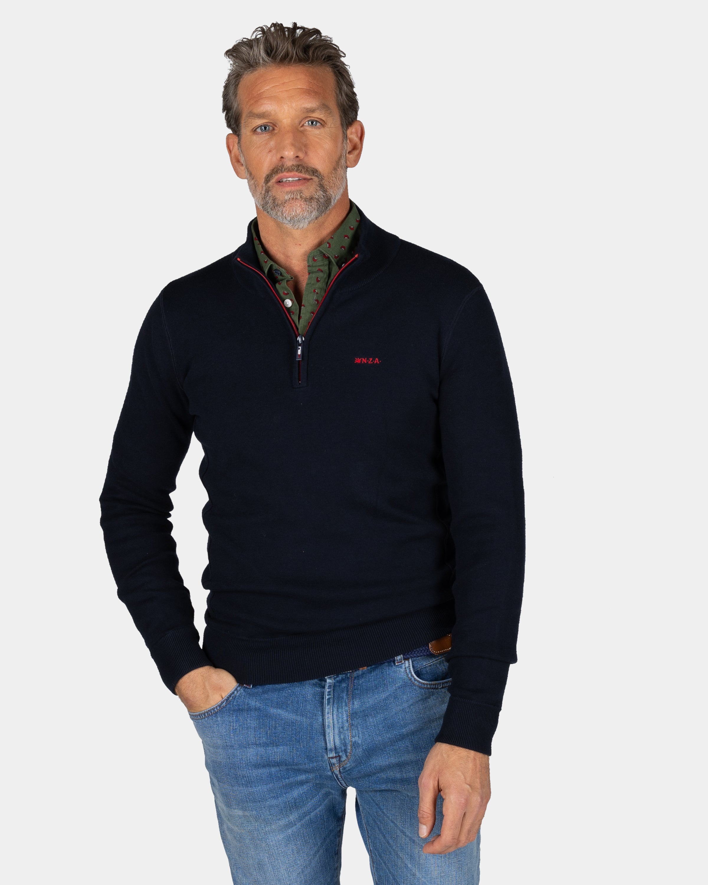 • GANT Herren Strickpullover Mit Halbem Reißverschluss - Evening Blue, Lässiger Baumwollpullover