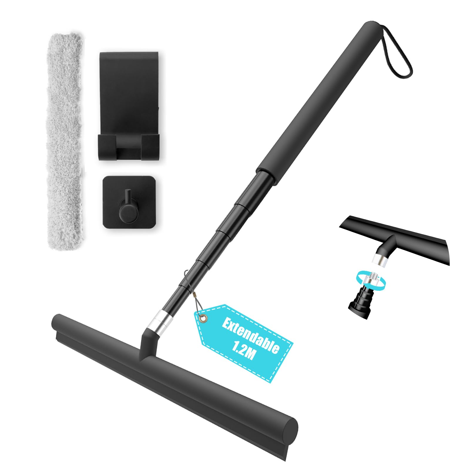 Schluss mit lästigen Wasserflecken! Dieser Duschabzieher mit praktischer Halterung macht das Putzen zum Kinderspiel. Die Teleskopstange aus rostfreiem Aluminium lässt sich von 30cm bis 120cm verlängern - perfekt für hohe Duschtüren und Fenster. Die 30,5cm breite Gummilippe aus hochwertigem Silikon entfernt Wassertropfen rückstandslos und hinterlässt streifenfreie Oberflächen. Einfach an der Wand befestigen - ganz ohne Bohren! Der rutschfeste Griff liegt angenehm in der Hand. Perfekt für Duschtüren, Spiegel, Fenster und Fliesen. Nie mehr Kalkflecken und Schlieren - dein Badezimmer glänzt wie neu! Auch super für Autoscheiben und Glastische. Einfache Handhabung, perfekte Ergebnisse - so macht Putzen Spaß!