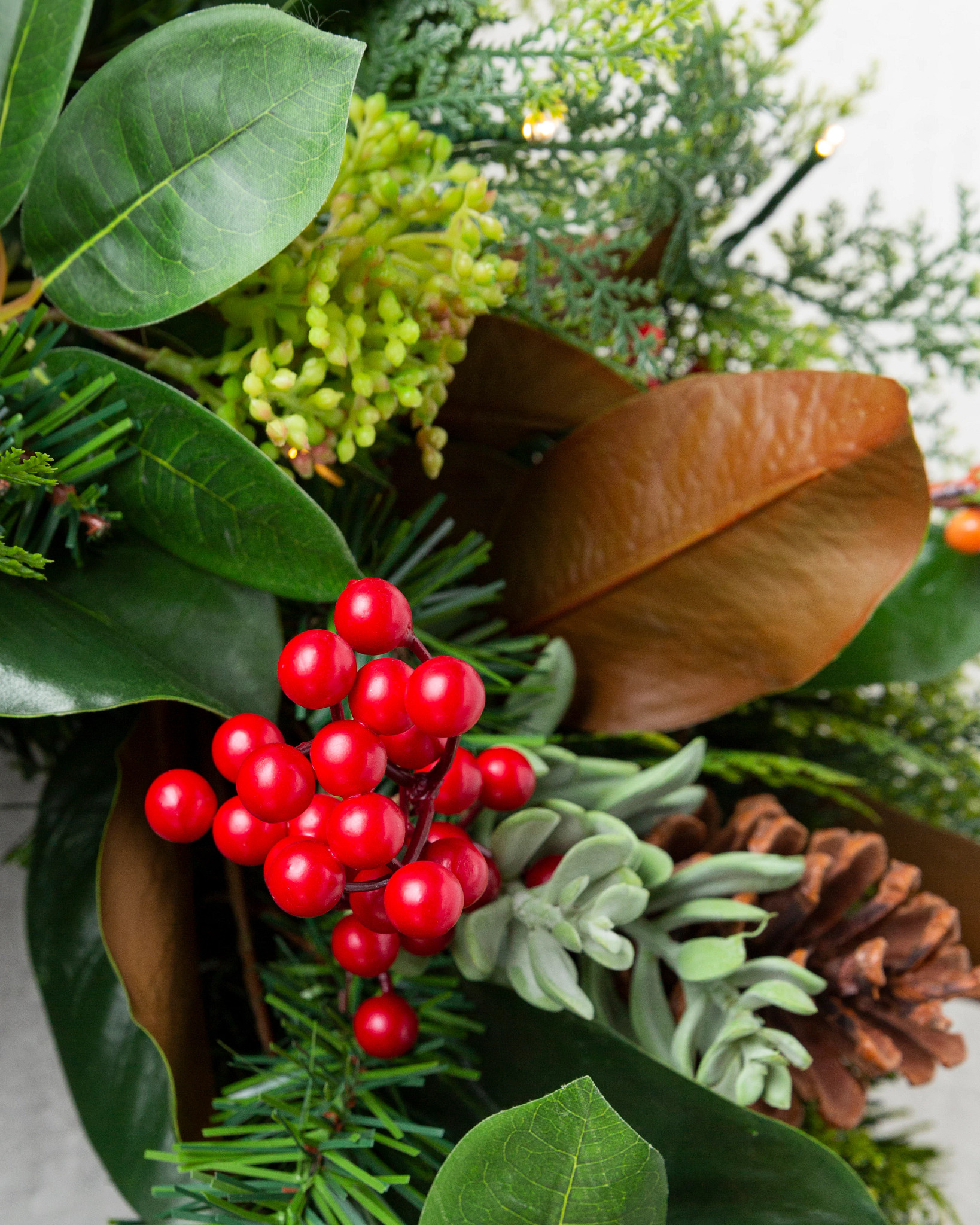 Oh wie festlich! Dieser Weihnachtskranz bringt sofort Stimmung in dein Zuhause. Mit funkelnden LED-Lichtern, künstlichen Tannenzweigen, roten Beeren und bereiften Tannenzapfen - einfach alles was zu Weihnachten gehört! Besonders süß: Die Handschuh-Motive die mit drauf sind. Ca. 30x40 cm groß, also nicht zu klein und nicht zu groß. Perfekt für die Haustür, aber auch für innen super. Der Haken ist schon dran, also einfach aufhängen und fertig! Wet terfestes Material, hält also auch draußen was aus. Macht dein Zuhause sofort weihnachtlich gemütlich - ob für dich selbst oder als Geschenk, dieser Kranz ist ein echter Hingucker!