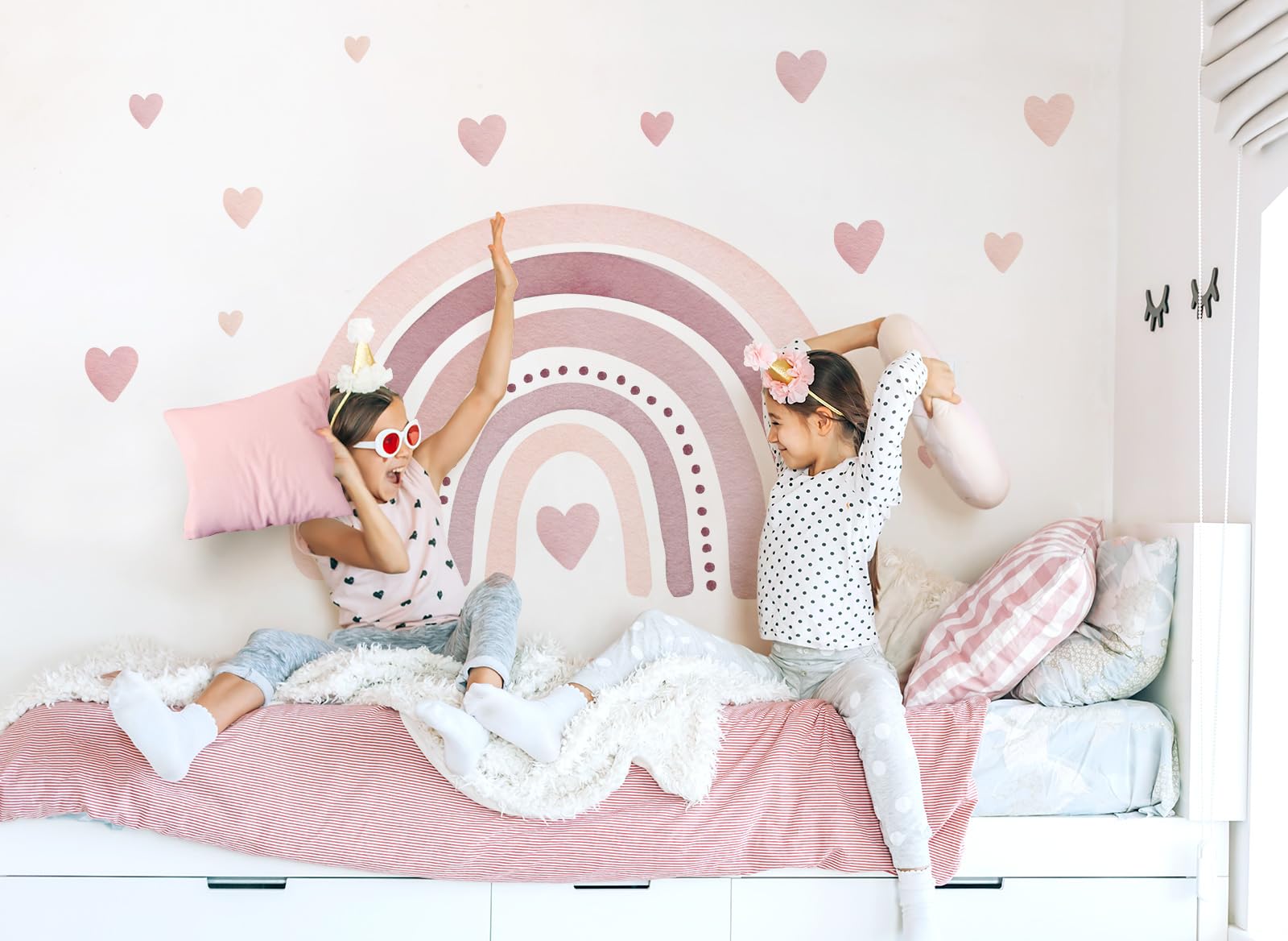 Boah, wie süß ist denn dieses Wandtattoo?! Der kleine Hase mit dem Regenbogen bringt sofort gute Laune ins Kinderzimmer. In rosa passt es perfekt für Mädchenzimmer - aber natürlich auch für Jungs!