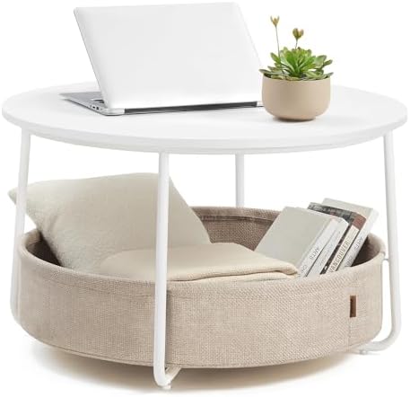 FURNITABLE Couchtisch Rund Mit Hebeplatte - Höhenverstellbar 48-62cm - Mit Stauraum Braun