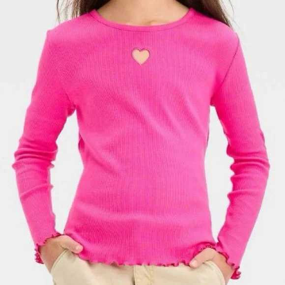 Mädchen Bluse Mit Herz-Ausschnitt - Langarm Bluse Aus Baumwolle