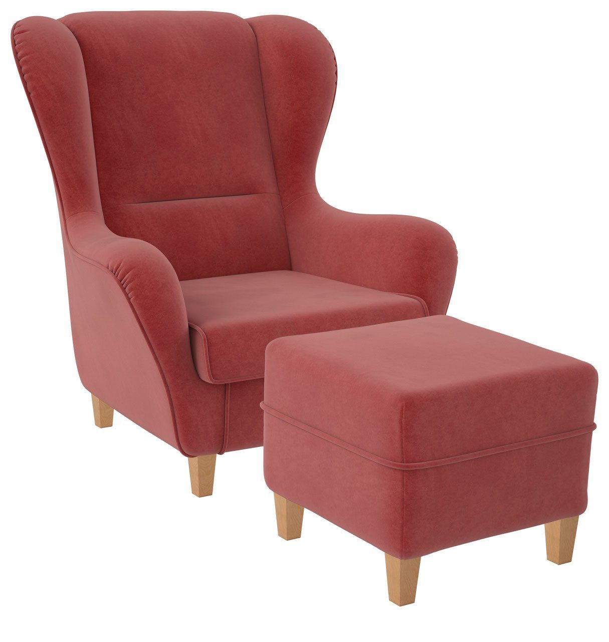 Dieser INLIFE Ohrensessel mit Hocker ist pure Entspannung! In edlem Weinrot Samt (100% Polyester) der sich super weich anfühlt. Mit praktischem Hocker zum Füße hochlegen - einfach himmlisch! Der Rahmen aus Sperrholz und Kautschukholz ist robust und stabil - hält bis 110kg aus. Maße: 81x90x96,5cm (BxTxH) - Sitzhöhe 43cm ist angenehm zum Aufstehen. Die Armlehnen auf 66cm Höhe sind perfekt zum Ausruhen der Arme. Einfache Montage - alles liegt bei. Perfekt fürs Wohnzimmer, Homeoffice oder als Leseecke. Der Hocker (55x54,5x42cm) kann auch separat genutzt werden. Die Schaumstoff-Füllung gibt nach und passt sich deinem Körper an. Schafft eine gemütliche Ecke zum Abschalten nach einem langen Tag. 30 Tage Rückgaberecht und 12 Monate Garantie - da kaufst du sorgenfrei. Einfach hinsetzen, Füße hochlegen und entspannen - besser geht's nicht!