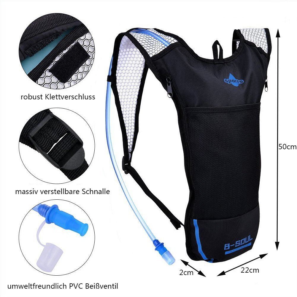 Die Trinkblase ist ungiftig und absolut sicher - keine Sorge mit schädlichen Chemikalien. Die breiten, atmungsaktiven Schultergurte verteilen das Gewicht optimal und reduzieren die Ermüdung.