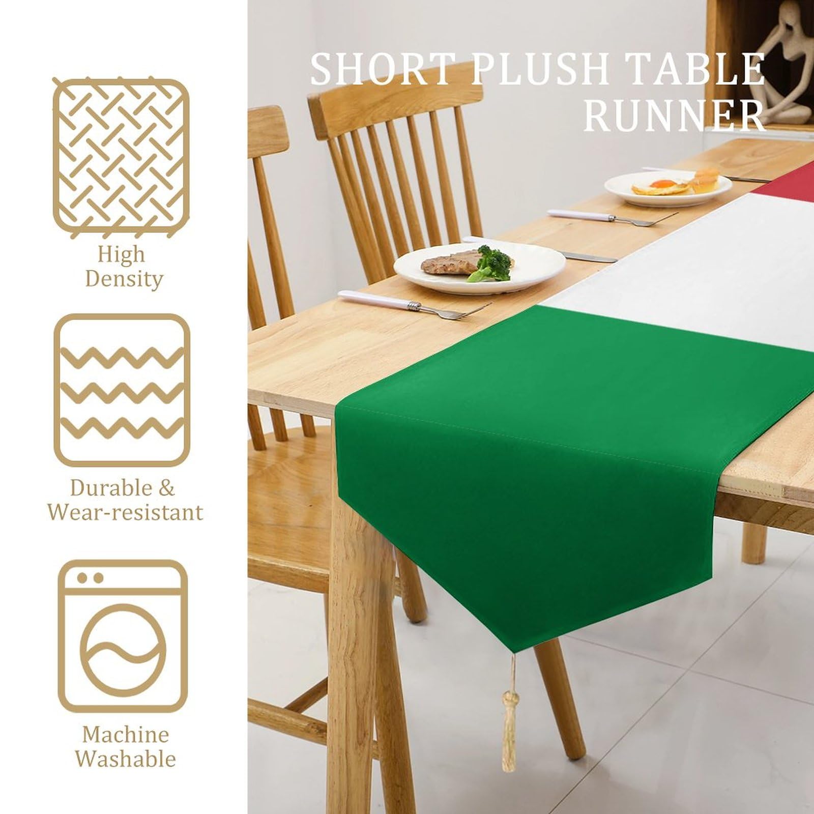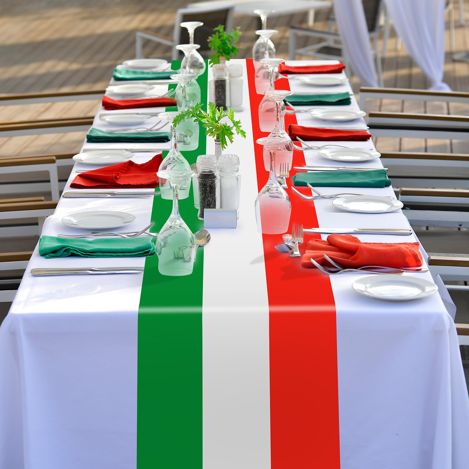 Planst du eine Italien-Party oder liebst einfach italienisches Flair? Dieser Tischläufer mit der italienischen Flagge bringt dolce vita in dein Zuhause! Mit 180x33cm ist er die perfekte Größe für Esstische, Buffets oder Sideboards. Hergestellt aus weichem Baumwollleinen ist er nicht nur dekorativ, sondern auch praktisch - er schützt deine Möbel vor heißen Töpfen, Kratzern und anderen Beschädigungen. Das Material ist verschleißfest, leicht und lässt sich kompakt zusammenfalten für die Aufbewahrung. Der hübsche Quastenrand gibt dem Läufer einen extra Charme und unterstreicht das italienische Design. Ob für den Innen- oder Außenbereich - dieser Läufer macht überall eine gute Figur! Perfekt für Geburtstagspartys, Themenabende, Weihnachten oder einfach um deinem Esszimmer einen frischen Look zu verpassen. Du kannst ihn unter Tassen, Geschirr, Vasen oder als reine Deko verwenden - er ist einfach vielseitig einsetzbar. Auch als Geschenk für Italien-Fans oder zur Einweihungsparty super geeignet. Mit diesem Tischläufer holst du dir ein Stück Italien nach Hause - buon appetito!