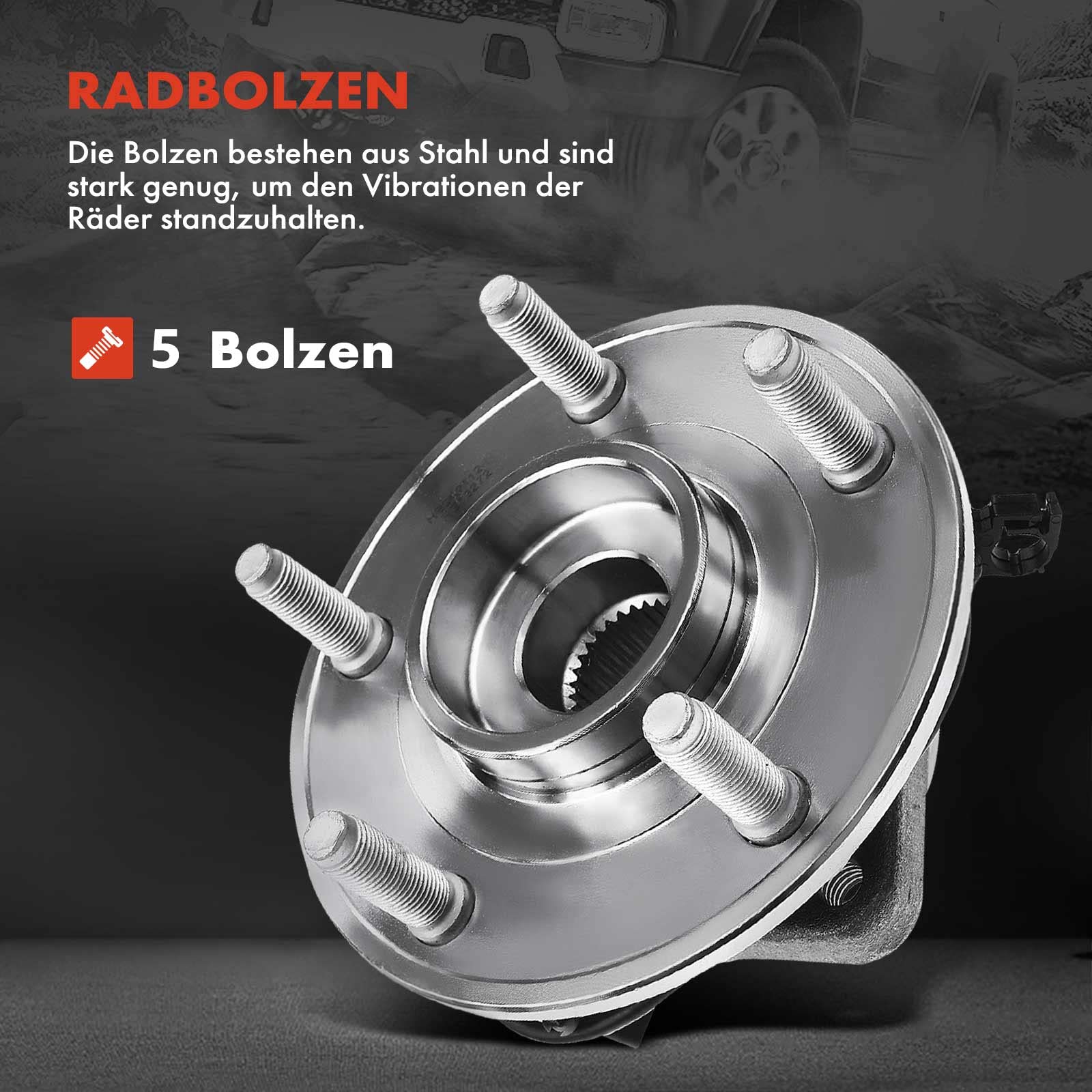 Technische Daten: Flanschdurchmesser 161,5mm, 5-Loch Felge, mit ABS Kabelsensor. Die Abschreckbehandlung sorgt für hohe Härte und Verschleißfestigkeit - ideal für raue Offroad-Einsätze. Vorschmierung reduziert Fahrgeräusche und verbessert das Fahrgefühl.