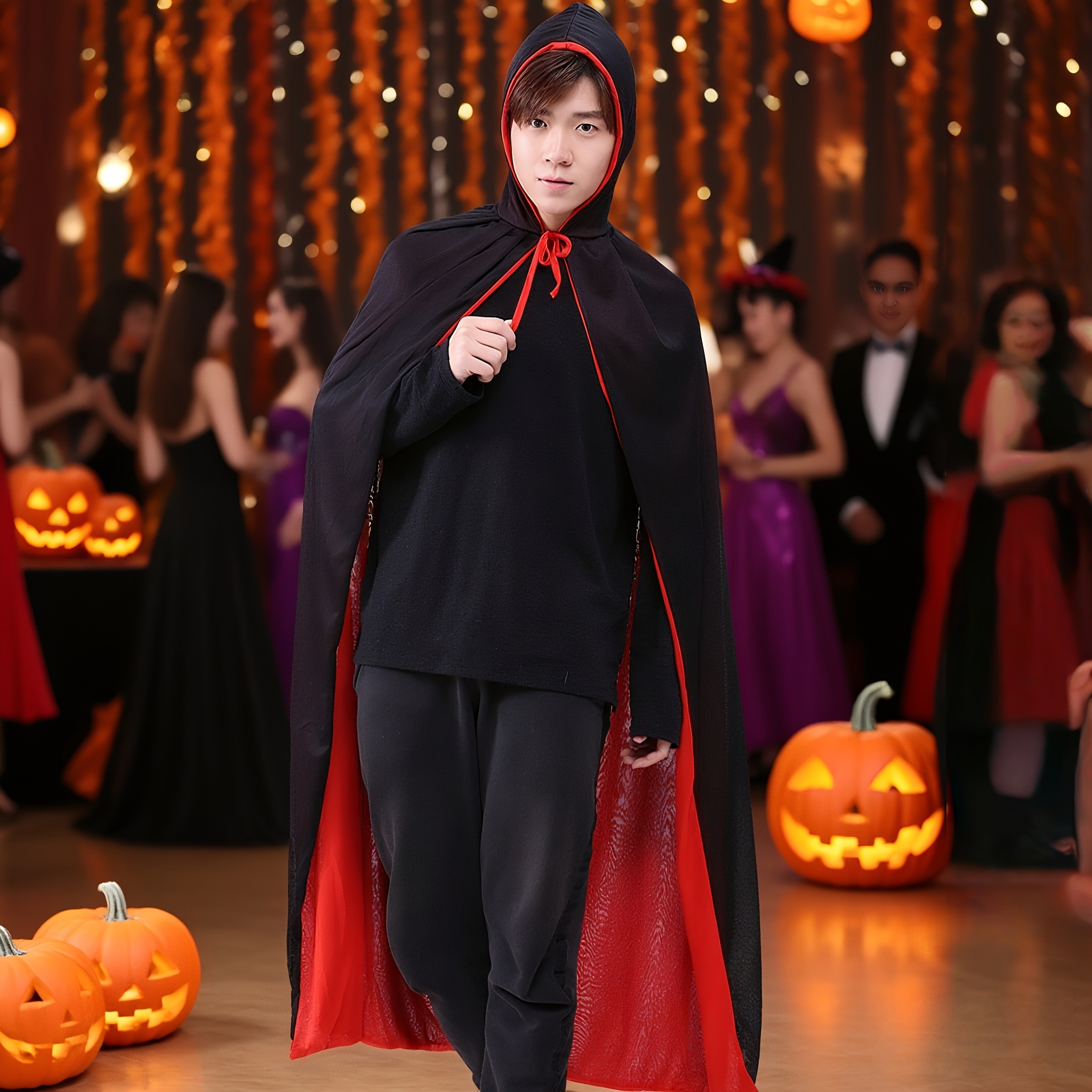 Das hochwertige Polyester-Material ist total reißfest und knittert nicht, auch wenn du ihn öfter trägst. Die verstellbare Kordel an der Vorderseite sorgt dafür, dass der Umhang bei jeder Figur perfekt sitzt. Und die praktische Kapuze gibt dir nicht nur den richtigen Style, sondern schützt dich auch vor Wind und Wetter. Perfekt für Halloween-Partys, Cosplay-Events oder Gothic-Treffs - dieser Umhang passt einfach zu jedem gruseligen Anlass!