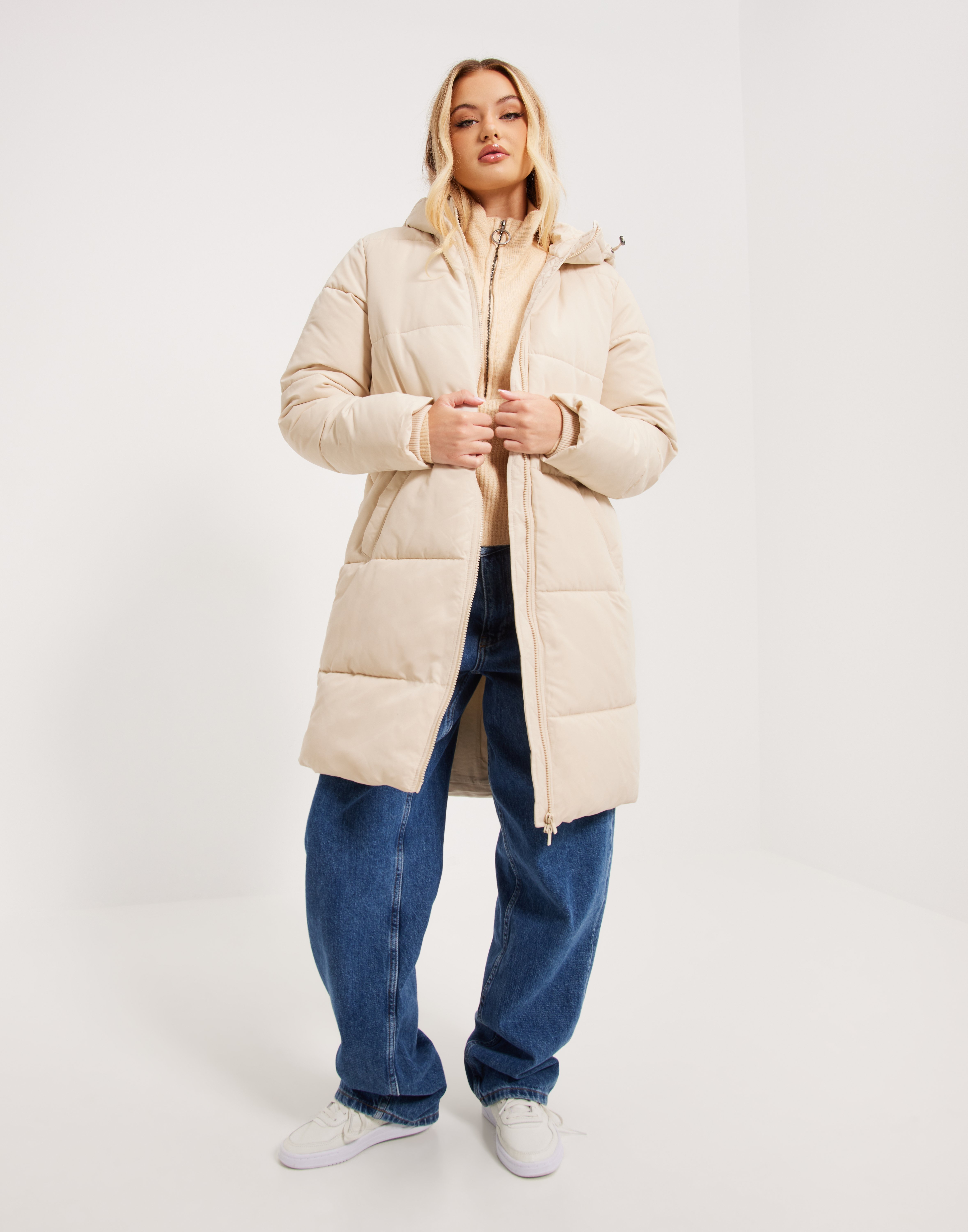 VILA Damen Wintermantel Mit Kapuze - Gefütterter Langer Mantel 95cm