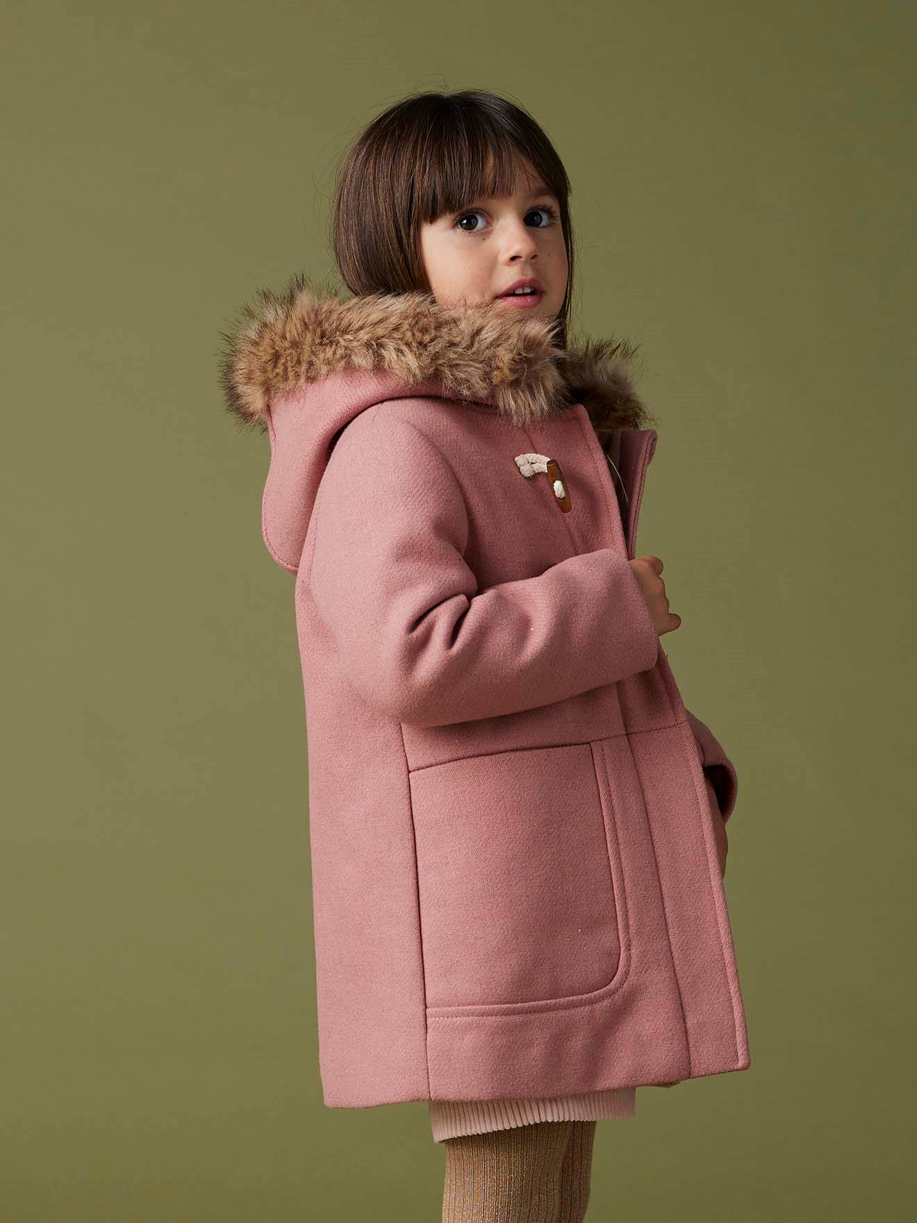 Wie niedlich ist denn dieser Dufflecoat für kleine Mädchen! Perfekt für den Winter in zwei tollen Farben: Nachtblau oder Camelfarben. Mit kuscheliger Kapuze und Webpelzrand - total gemütlich! Die praktischen Knebelknöpfe in Holz-Optik sehen nicht nur süß aus, sie sind auch super einfach zu schließen. Unter dem Reißverschluss versteckt sich eine Druckknopfpatte für extra Schutz am Hals. Und die zwei großen Vordertaschen sind perfekt für kleine Schätze. Aus wärmender Wolle-Mischung - deine Tochter friert bestimmt nicht! Mit beschriftbarem Namensetikett - praktisch für Kindergarten oder Schule. Ob für den Spielplatz, Kindergarten oder Spaziergänge - damit ist deine Kleine immer stylisch und warm angezogen!
