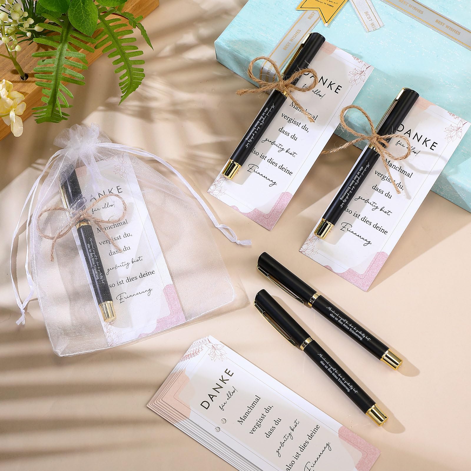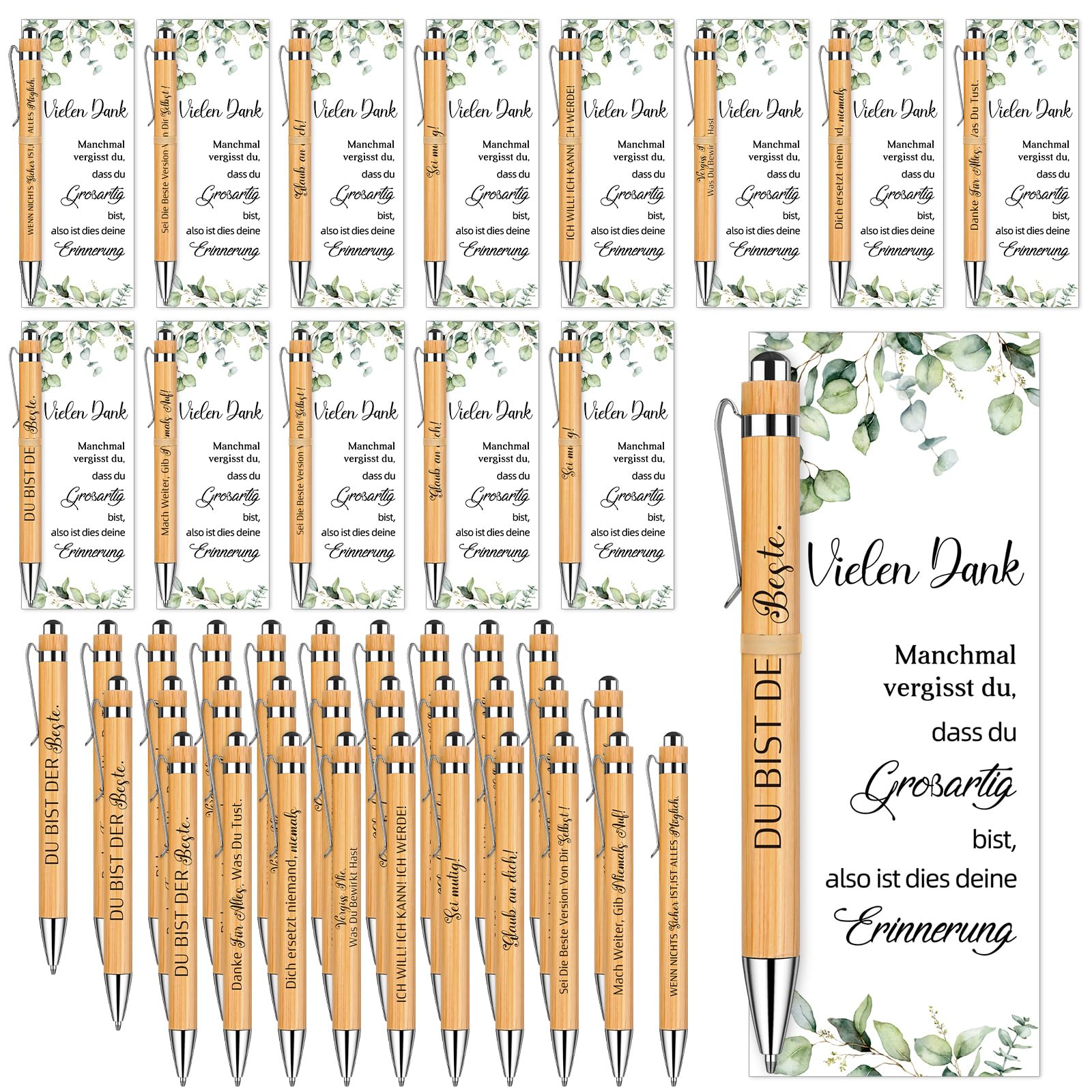Suchst du ein Geschenk, das wirklich von Herzen kommt? Diese 24 Glücksstift-Sets sind perfekt für Abschiede, Dankeschöns oder besondere Anlässe! Jedes Set enthält einen hochwertigen Holz-Kugelschreiber mit 'Glücksstift'-Gravur, der an eine inspirierende Karte gebunden ist. Die liebevollen Worte darauf erinnern daran, dass das Glück uns oft überrascht, wenn wir am wenigsten damit rechnen. Verpackt in eleganten weißen Organza-Beuteln mit Bastkordel - sofort versandfertig und total ansehnlich. Ob für Kollegen, die das Unternehmen verlassen, Schüler nach der Grundschule oder zur Hochzeit, Kommunion, Taufe - diese Stifte bringen Freude und bleiben in Erinnerung. Einfach praktisch, emotional wertvoll und super vielseitig einsetzbar!