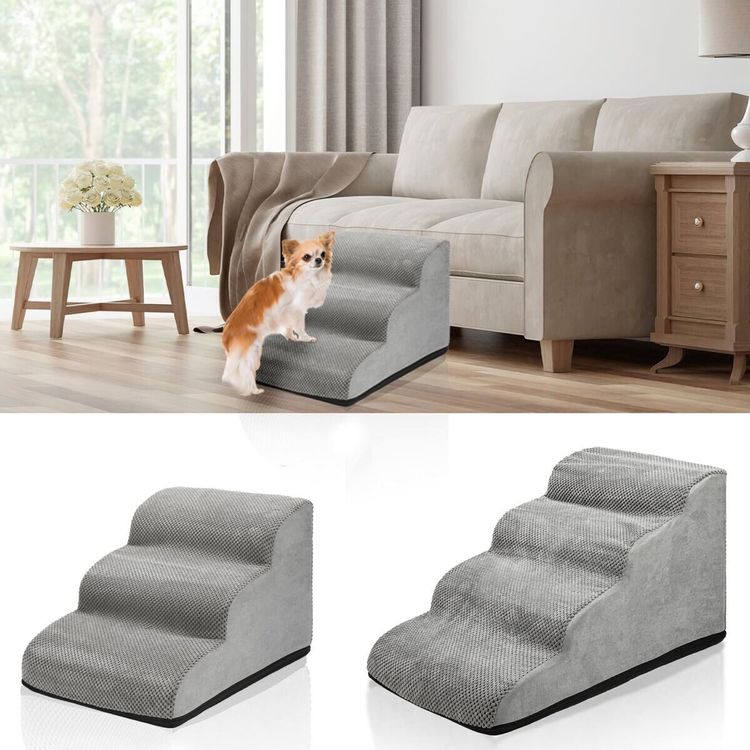 Perfekt für deine Vierbeiner! Diese 3-stufige Hundetreppe mit integrierter Katzen-Schlafnische macht das Leben für Haustiere und Besitzer gleichermaßen einfacher. Einfach auspacken - sie entfaltet sich wie von Zauberhand zu einer stabilen Treppe für Sofa und Bett.