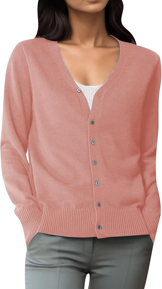 So ein praktischer Cardigan fehlt in keiner Garderobe! Dieser Damen Cardigan mit klassischer Knopfleiste und V-Ausschnitt ist perfekt für die Übergangszeit. Aus weichem Strickmaterial gefertigt, ist er super angenehm zu tragen und atmungsaktiv - kein Schwitzen mehr im Wechsel zwischen drinnen und draußen! Der figurbetonte Schnitt betont deine Silhouette, ohne einzuengen. Die langen Ärmel kannst du bei Bedarf hochkrempeln für nen lässigen Look. Ob zur Jeans, zu Röcken oder überm Kleid - dieser Cardigan passt zu allem und ist vielseitig kombinierbar. Für Office, Freizeit oder unterwegs - immer siehst du stylisch aus! Es gibt verschiedene Größen, also für jede Figur die passende Passform. Und praktisch: Er ist maschinenwaschbar, also super pflegeleicht. Perfekt als Geschenk für Mütter, Freundinnen oder Töchter - oder natürlich für dich selbst! So hast du immer was zum Überziehen, wenn's mal kühler wird.