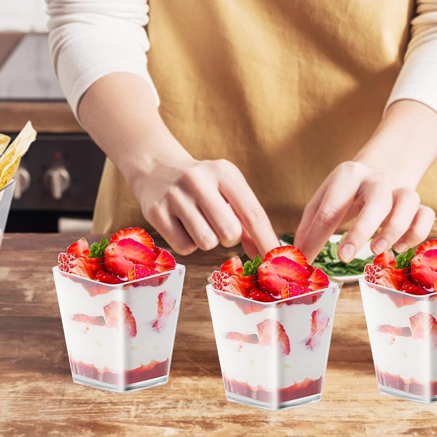 Die Gläser sind super vielseitig einsetzbar: Für Pudding, Tiramisu, Obstsalat, Eis, Joghurt mit Müsli oder auch als Dipschälchen für Chips und Gemüsesticks.