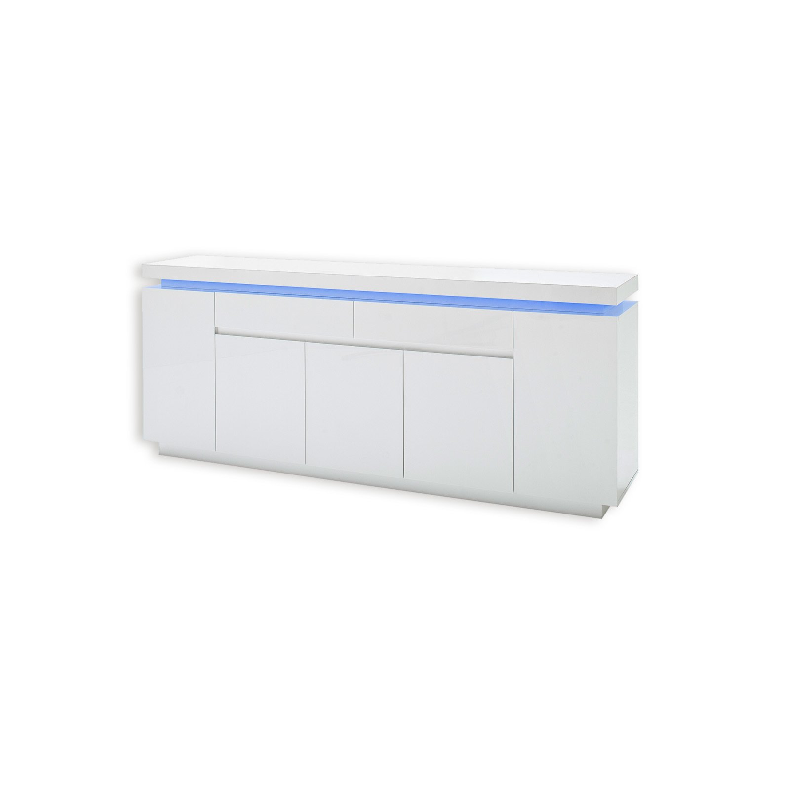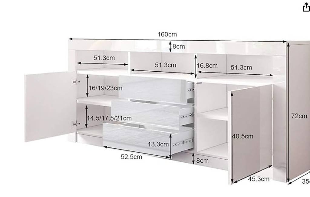 Wow, diese Anrichte bringt richtig Stil in dein Wohnzimmer! ✨ Mit 160x72x35 cm bietet sie mega viel Stauraum hinter 2 Türen und 3 praktischen Push-to-Open Schubladen. Das Highlight: Die integrierte LED-Beleuchtung mit 16 Farben und 4 Blitzeffekten! Per 24-Tasten-Fernbedienung steuerst du alles - ein-/ausschalten, dimmen, Farbwechsel. Einfach magisch! 💫 Gefertigt aus hochwertigem MDF und Spanplatten, ist die Anrichte super stabil und langlebig. Die Hochglanzfront in Weiß kombiniert mit matter Seite sieht einfach edel aus. Ob für die Multimedia-Anlage, als Bücherregal oder zur Aufbewahrung - hier findet alles Platz. Wichtig: Die Lieferung kommt in 2 Flatpack-Paketen, die vielleicht nicht gleichzeitig ankommen. Aber keine Sorge - mit der beiliegenden Montageanleitung baust du sie easy zusammen. Dein Wohnzimmer wird zum echten Hingucker! 🏠
