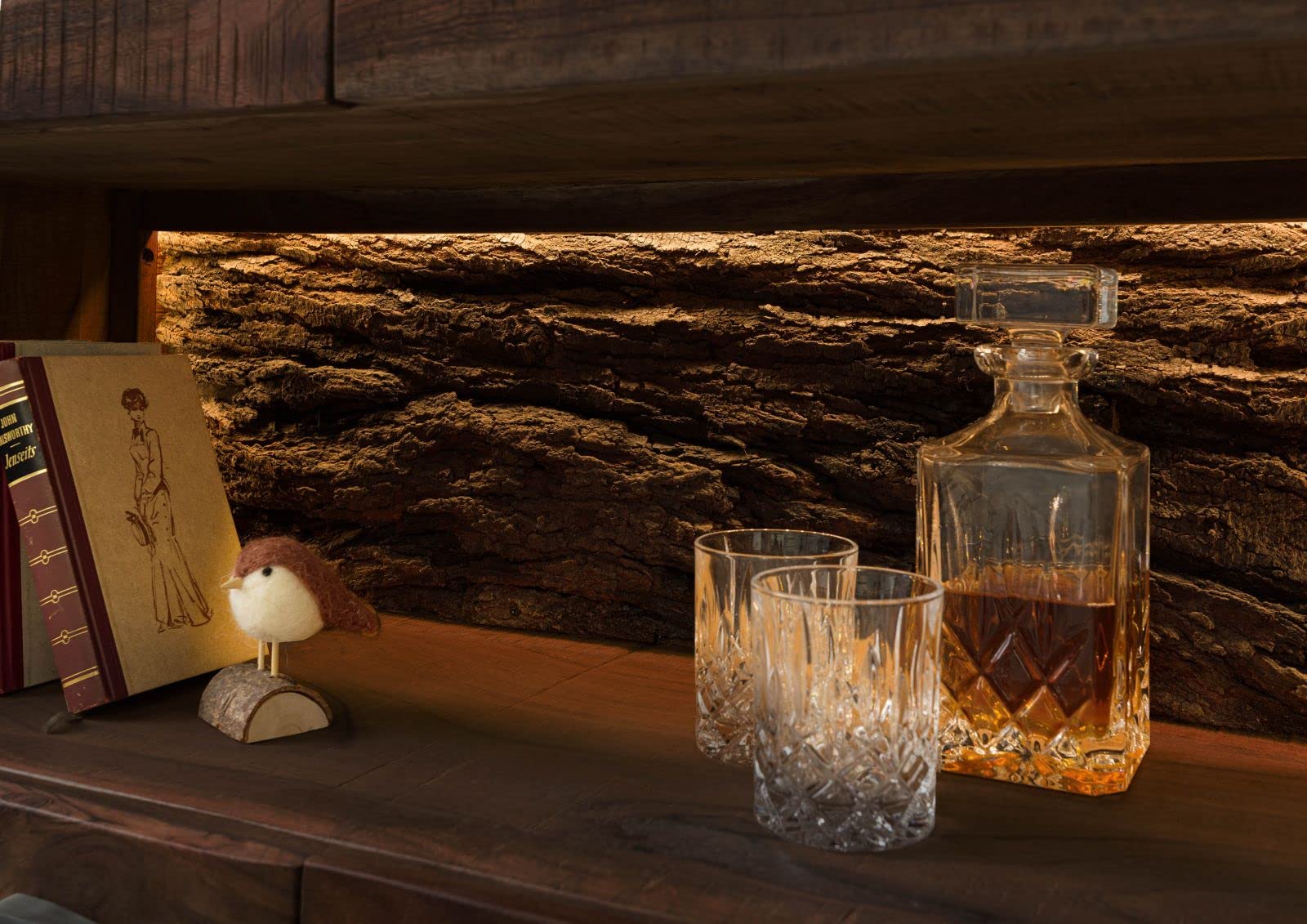 Diese Vitrine ist ein absoluter Blickfang in deinem Zuhause! Gefertigt aus massivem Akazienholz in dunkelbraun, mit integrierter LED-Beleuchtung, die deine Schätze perfekt in Szene setzt. Das besondere Detail: Echte Baumrinde als Rückwand - jedes Stück ein Unikat! 6 geräumige Fächer, teilweise mit Glasböden. Solide Zink-Griffe und hochwertige Verarbeitung. Maße: 98x40x180cm - passt auch in kleinere Räume. Wird montiert geliefert, kein lästiges Zusammebauen. Perfekt für Sammlerstücke, Bücher oder Deko-Artikel. Mach dein Wohnzimmer mit diesem besonderen Möbelstück komplett!