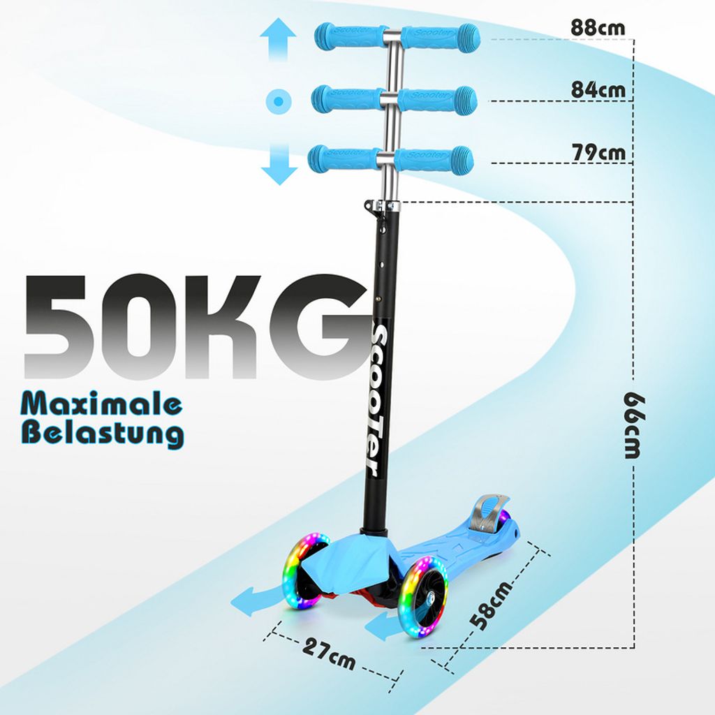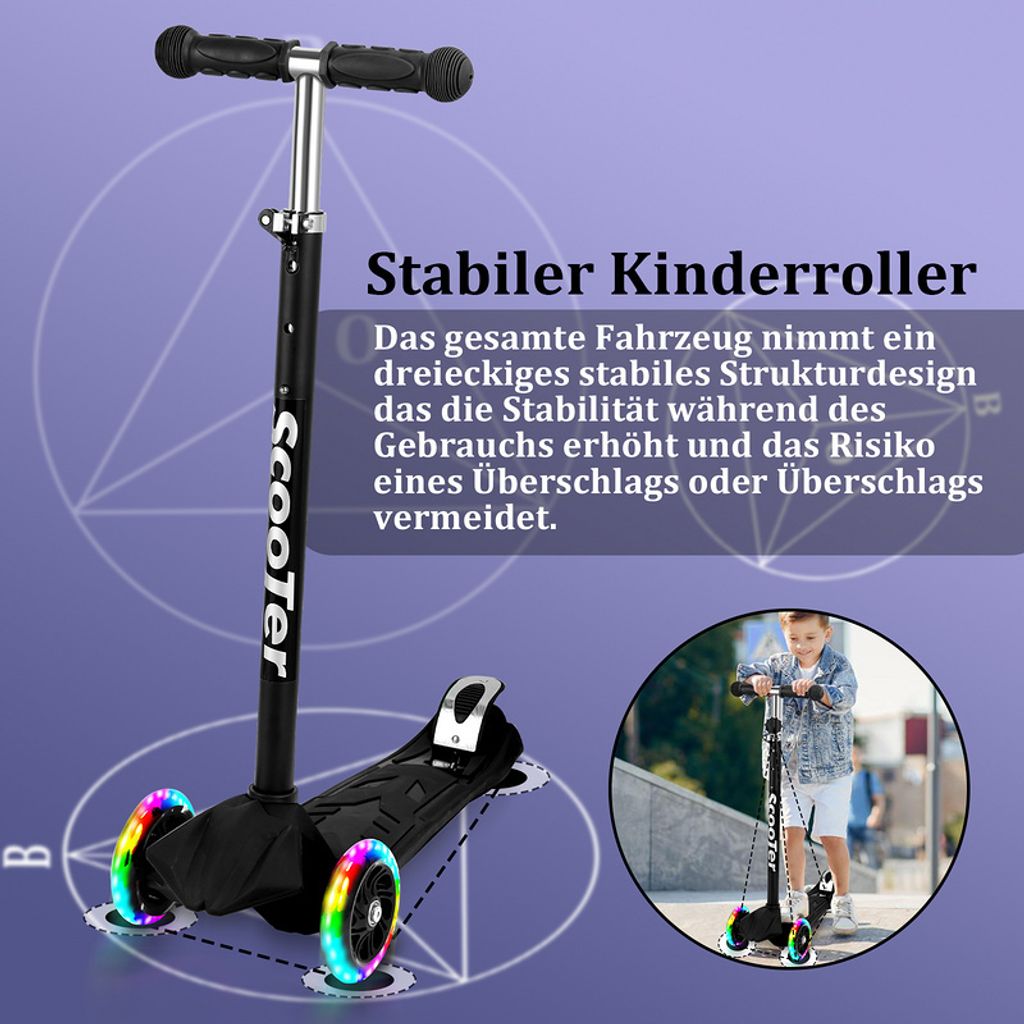 Der absolute Hit für kleine Fahrer! Der FableKids Kinderroller mit coolen LED-Rädern bringt Kinderaugen zum Leuchten. Das 3-Rad-Design gibt maximale Stabilität - perfekt für Kinder ab 3 Jahren. Die Räder leuchten beim Fahren ganz ohne Batterien und sorgen für mehr Sichtbarkeit. Die Lean-to-Steer-Lenkung funktioniert durch Gewichtsverlagerung - so lernen Kinder intuitiv das Balancieren. Die T-Lenkstange ist 3-fach höhenverstellbar und wächst mit deinem Kind mit. Rutschfeste Trittfläche (56x13,5cm) für sicheren Stand. Bis 50kg belastbar und aus robustem PP/Nylon. Super praktisch: lässt sich schnell zusammenklappen für platzsparende Aufbewahrung oder Transport im Auto. Ob im Park, auf dem Gehweg oder im Garten - dieser Scooter fördert Motorik und Gleichgewichtssinn und macht einfach riesig Spaß. Das perfekte Geschenk für aktive Kinder!