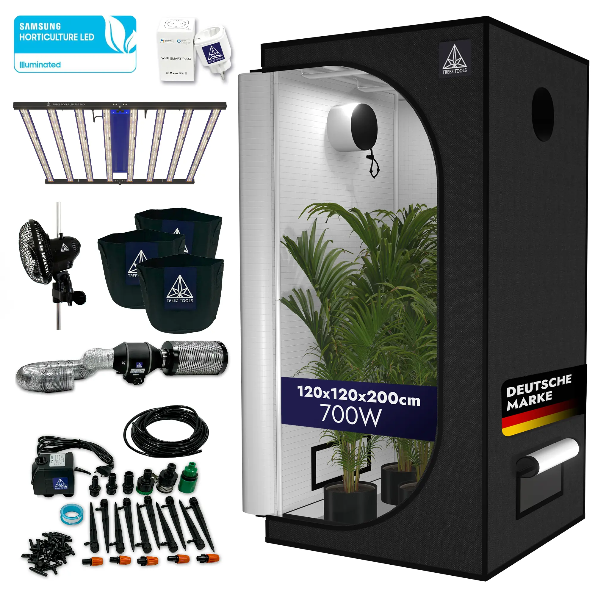 Starte deine eigene Indoor-Gärtnerei! Dieses komplette Grow-Zelt-Set hat alles, was du für erfolgreiches Pflanzenwachstum brauchst. Das Zelt aus robustem 600D Oxford-Stoff misst 60x60x140cm und kommt mit 100W Vollspektrum-LED, 4-Zoll-Abluftventilator, Aktivkohlefilter und allem notwendigen Zubehör. Energieeffizientes Design spart Stromkosten, während der Kohlefilter unangenehme Gerüche filtert. Perfekt für Anfänger und erfahrene Gärtner - einfach aufbauen und loslegen! Das transparente Beobachtungsfenster ermöglicht dir, deine Pflanzen immer im Blick zu behalten. Ideal für Garagen, Balkone oder Abstellräume. Mit Timer, Thermohygrometer und allem Drum und Dran. Deine Pflanzen werden es dir danken! Komplettset - einfach auspacken, aufbauen und die grüne Oase genießen.