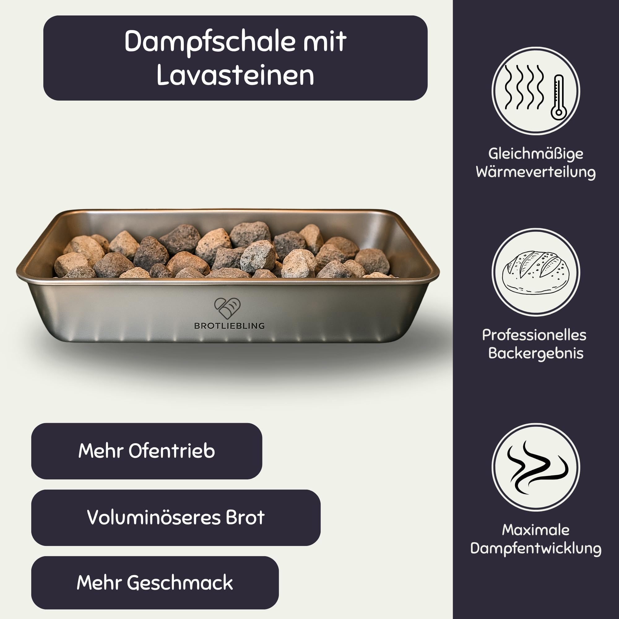 Wow, willst du endlich Brot backen wie ein Profi-Bäcker? Diese Dampfschüssel mit echten Lavasteinen aus der Eifel macht's möglich! Einfach den Ofen mit der Schüssel auf 230°C vorheizen, dann heißes Wasser über die Steine gießen und sofort die Ofentür schließen. Der Dampf sorgt dafür, dass dein Brot super aufgeht und eine mega-knusprige Kruste bekommt, während es innen schön saftig bleibt. Die 1,4 kg Lavasteine speichern die Hitze perfekt und geben sie gleichmäßig ab. Passt in jeden Backofen und ist aus hitzebeständigem Edelstahl - easy zu reinigen! Endlich Brotbacken auf Profi-Niveau!