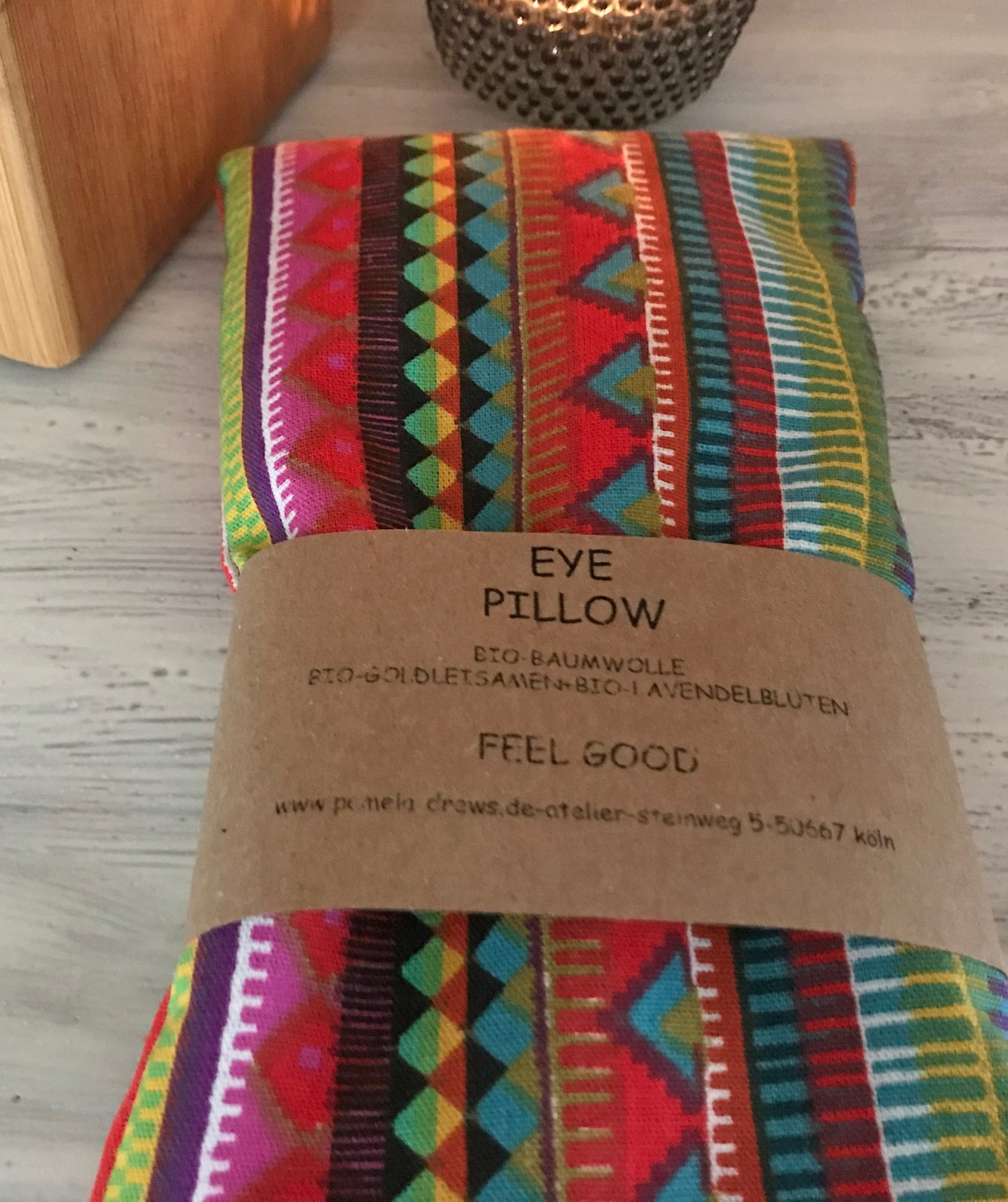 Ahhh, Entspannung pur! Dieses Lavendel-Augenkissen ist genau das Richtige, wenn du mal richtig abschalten willst.\n\nGefüllt mit natürlichen Lavendelsamen und Reis - der Duft ist einfach himmlisch und beruhigend. Der leichte Druck auf die Augenlider hilft dabei, komplett zu entspannen.\n\nPerfekt für Yoga (besonders die Savasana-Position), Meditation oder einfach nach einem anstrengenden Tag. Einfach 15-20 Minuten auflegen und die Seele baumeln lassen.\n\nHergestellt aus 100% Bio-Baumwolle mit GOTS-Zertifikat - also schadstofffrei und hautverträglich. Sogar handgefertigt in Barcelona!\n\nOb zu Hause auf dem Sofa, im Yogastudio oder im Urlaub - dieses Kissen ist dein kleiner Wellness-Oase für die Augen.\n\nSuper für alle, die viel am Bildschirm arbeiten oder einfach mal eine Auszeit brauchen. Der Lavendelduft sorgt für zusätzliche Entspannung.\n\nEinfach hinlegen, Kissen auf die Augen - und schon beginnt die Erholung. Besser als jede teure Wellness-Behandlung!