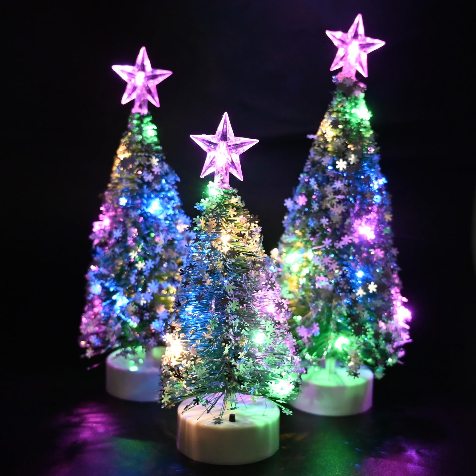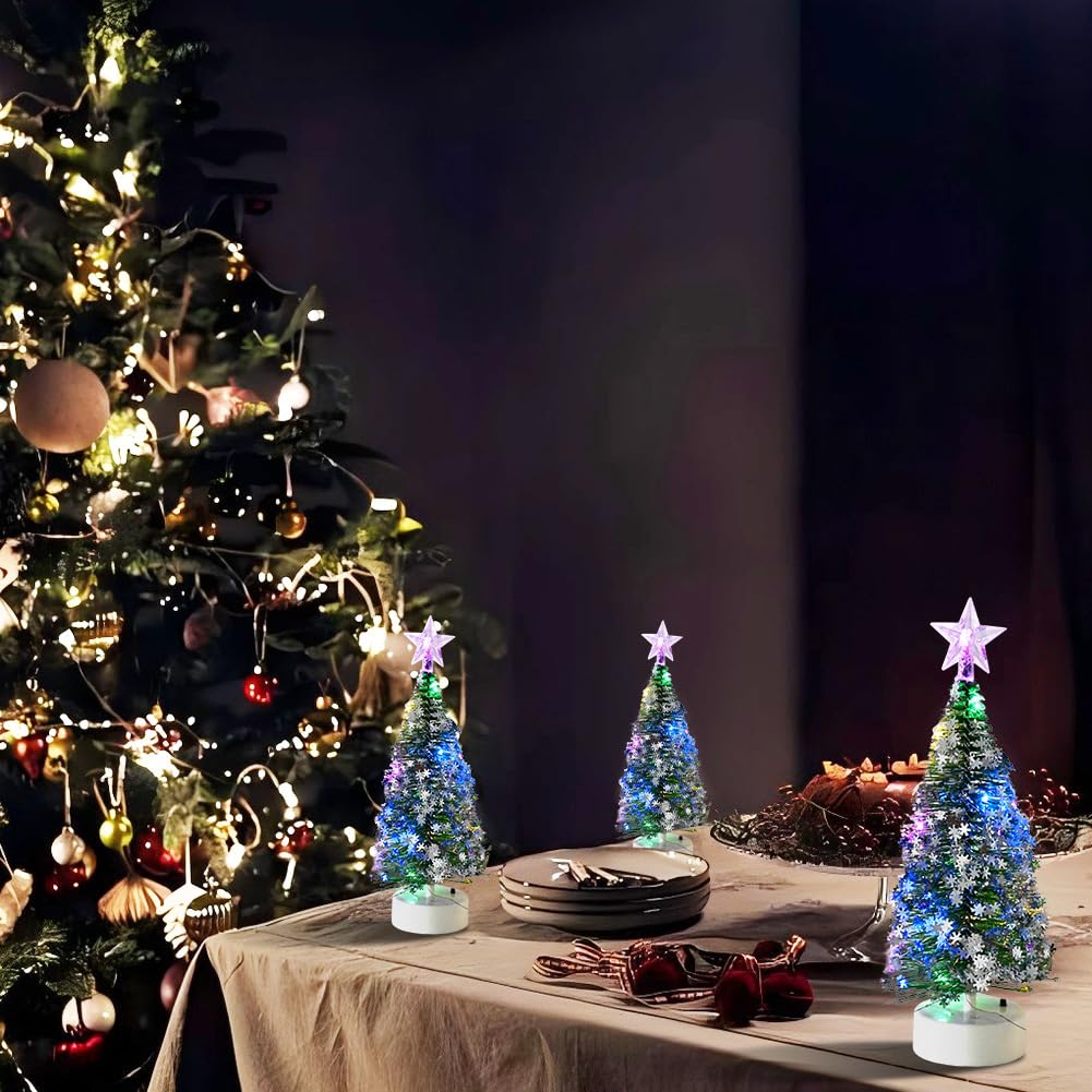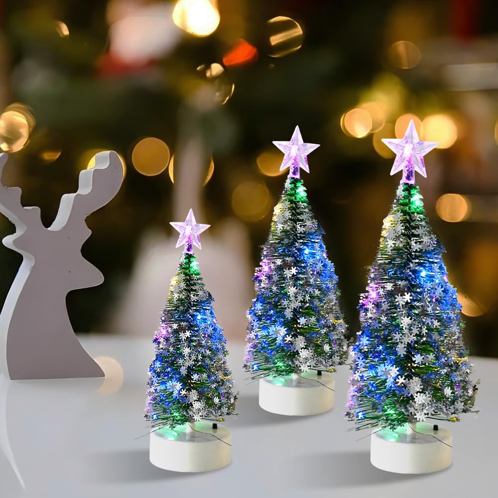Hallo Weihnachtsfans! Diese niedlichen Tisch-Weihnachtsbäume bringen sofort festliche Stimmung in euer Zuhause. Im 3er-Set mit je 10 LED-Lichtern sind sie perfekt für die Weihnachtsdekoration auf Tischen, Regalen oder Fensterbänken. Die Bäume aus Kunststoff mit Sisal-Optik und Schneeeffekt sehen täuschend echt aus und versprühen winterlichen Charme. Einfach mit 2 AA-Batterien betreiben (nicht im Lieferumfang) und schon erstrahlen sie in warmem Licht. Ob im Wohnzimmer, in der Küche, auf dem Schreibtisch oder als Teil einer Weihnachtsdorf-Landschaft - diese Mini-Bäume setzen überall coole Akzente. Besonders abends, wenn die Lichter angehen, schaffen sie eine richtig gemütliche Atmosphäre. Perfekt auch fürs Büro, für Weihnachtsfeiern oder als Geschenk für Freunde und Familie. Die verschiedenen Größen im Set sorgen für interessante Höhenunterschiede und machen die Dekoration noch lebendiger. Einfach aufstellen, Batterien rein und sich an der weihnachtlichen Stimmung erfreuen!