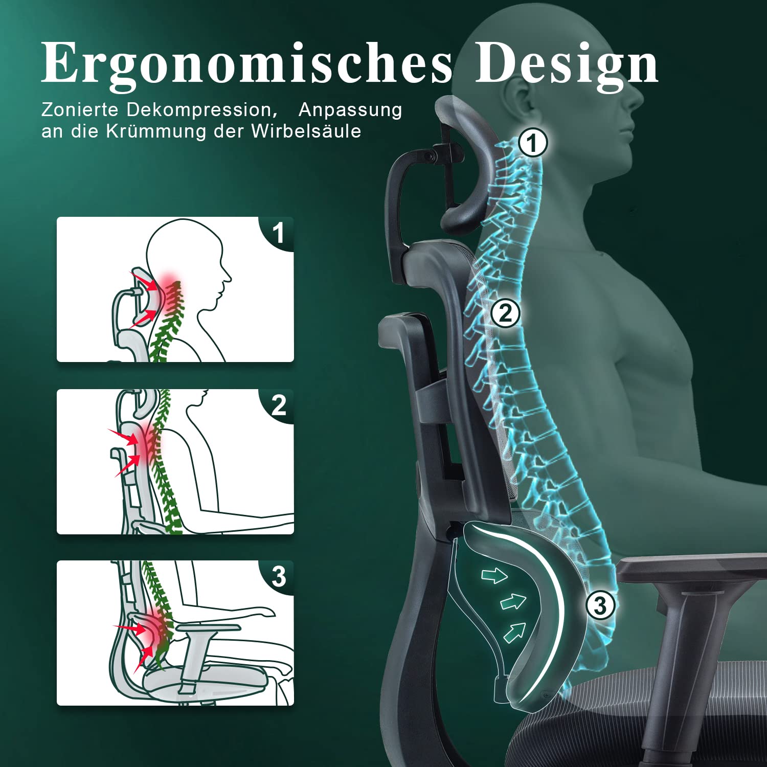 • Onbest Bürostuhl Mit Lordosenstütze - Bequem Für Homeoffice