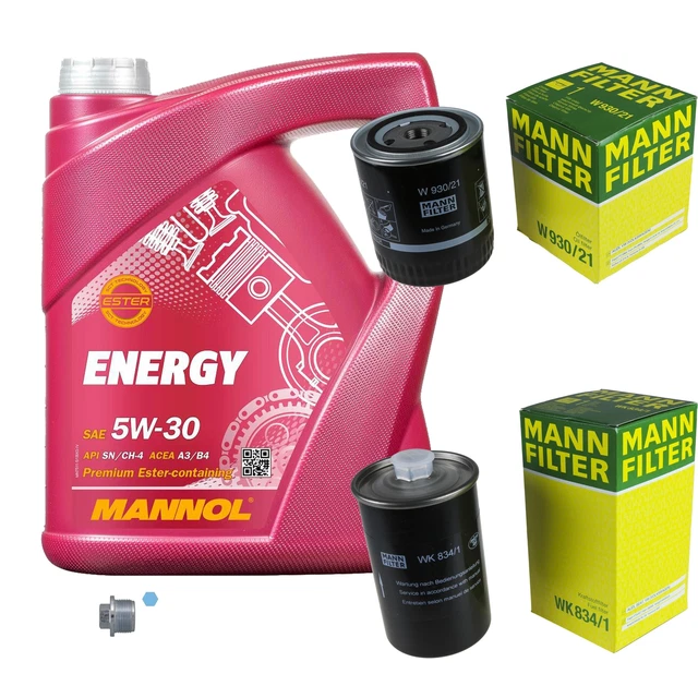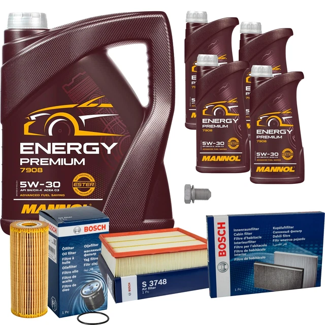 Alles für deine Auto-Inspektion in einem Set! Enthält 6 Liter MANNOL Energy 5W-30 Motoröl - perfekt für moderne Benzin- und Dieselmotoren. Dazu Ölfilter, Luftfilter, Innenraumfilter und Kraftstofffilter von MANN - alles Markenqualität! Mit Dichtring für den Ölwechsel - nichts vergessen! Das Motoröl mit Ester-Technologie schützt deinen Motor optimal, spart Kraftstoff und verlängert die Lebensdauer. Perfekt für Turbolader und Start-Stop-Systeme. Einfach bestellen und deine Inspektion selbst durchführen oder zur Werkstatt mitnehmen. Spart Zeit und Geld gegenüber Einzelkauf! Qualität die überzeugt - für ein sicheres Fahrgefühl!
