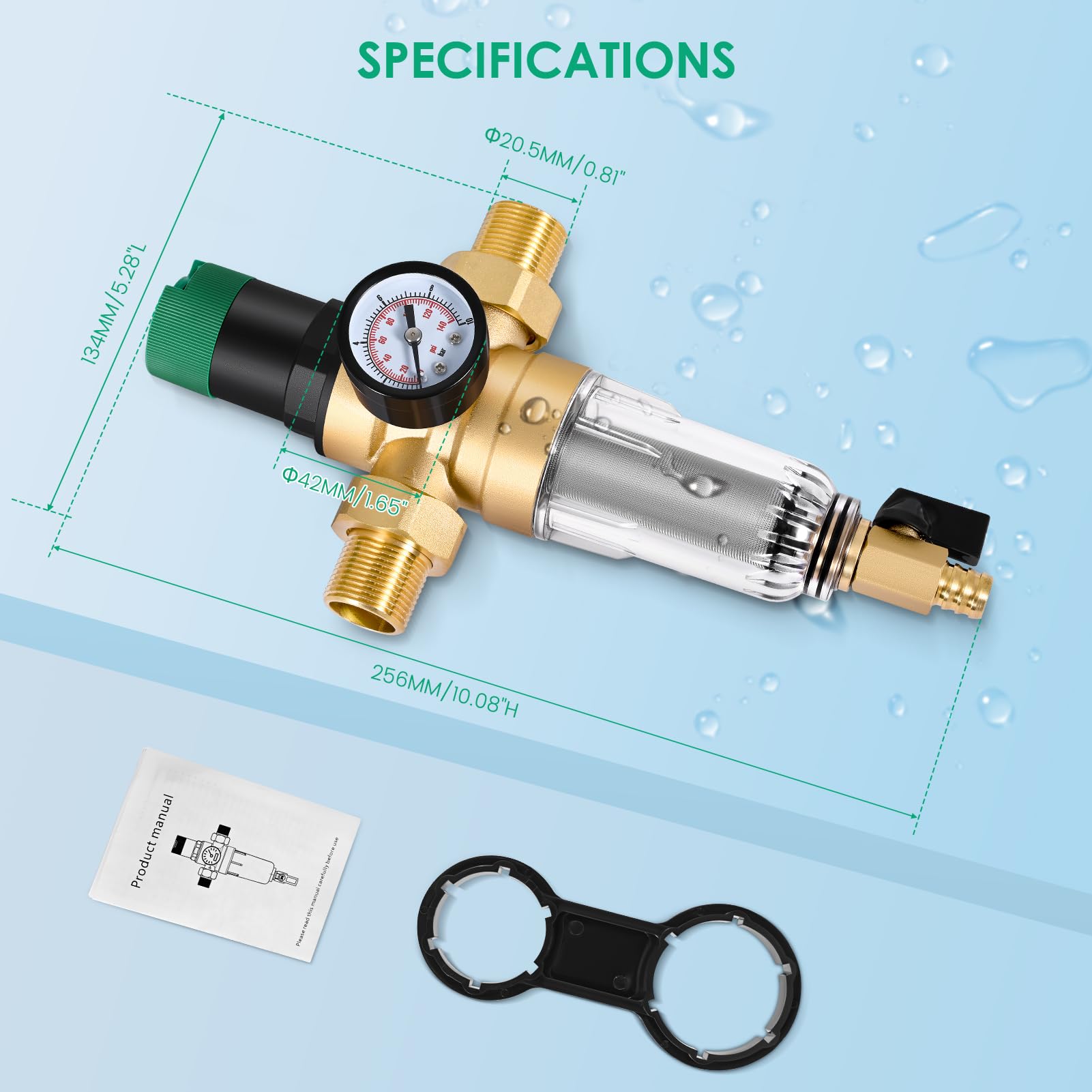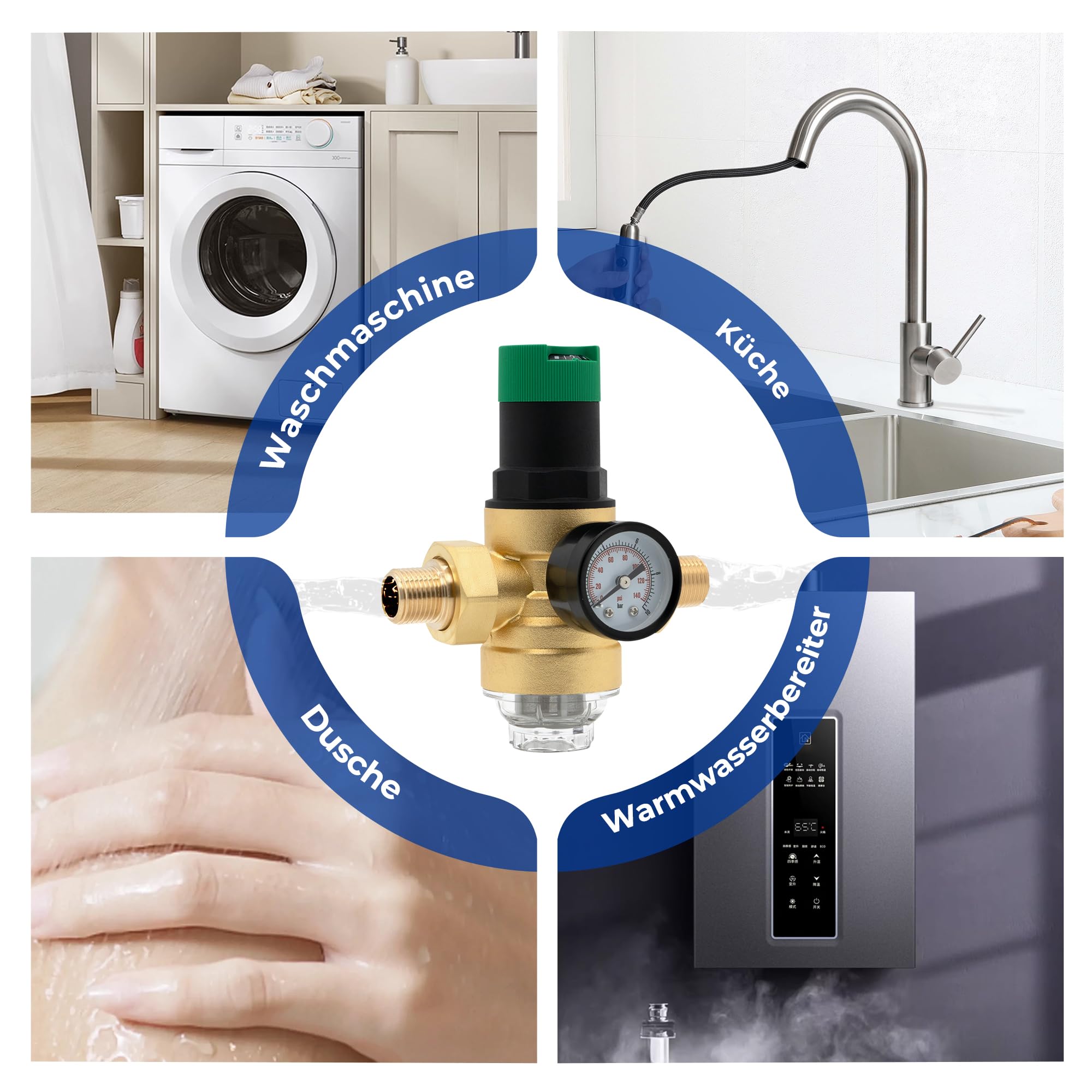 Hey, dieser Druckminderer ist echt praktisch wenn du deine Wasserleitung schützen willst! Mit G3/4 Zoll Anschlüssen passt er perfekt an die meisten Gartenhähne und Hausanschlüsse. Das coole Feature: Er hat ein eingebautes Manometer das dir genau anzeigt wie viel Druck auf der Leitung ist - bis zu 1 MPa (10 bar/140 psi) kannst du damit messen. So siehst du sofort wenn was nicht stimmt! Aus hochwertigem POM-Material gemacht, hält der Druckminderer lange und reagiert super schnell. Einfach am Wasserhahn anschrauben und mit dem praktischen Drehrad den idealen Druck einstellen - kein Hexenwerk! Perfekt für Gartenbewässerung, aber auch für Wasserfilter, Solaranlagen oder Durchlauferhitzer. Schützt deine ganzen Geräte vor zu hohem Druck und verlängert so deren Lebensdauer. Maße: ca. 8,5 x 5 cm, wiegt nur 158 Gramm - handlich und einfach zu installieren. Ein Muss für jeden der seine Wasserinstallation im Griff haben will!