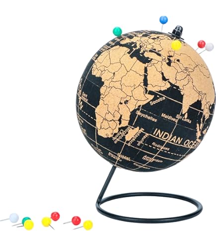 Wo warst du schon überall? Mit diesem Kork-Globus von TRIPVEA kannst du deine Reisen festhalten, Erinnerungen markieren oder einfach nur die Welt erkunden. Der 20 cm große Globus besteht aus natürlichem Kork und hat einen stabilen Metallfuß. Im Lieferumfang sind 342 selbstklebende Flaggen enthalten, mit denen du Länder kennzeichnen kannst. Ein tolles Geschenk für Reiselustige, Geographie-Fans oder als kreative Deko im Wohnzimmer. Umweltfreundlich, nachhaltig und sozial – denn TRIPVEA lässt in Frankreich von Menschen mit Behinderungen verpacken.