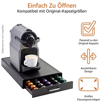 Boah, endlich Ordnung im Kaffee-Chaos! Diese Schublade ist nicht nur ein Aufbewahrungswunder für deine Kapseln – sie dient gleichzeitig als stabile Basis für deine Kaffeemaschine. Aus robustem Eisen und mit ner rutschfesten Oberseite, damit deine Maschine sicher steht. 36 Kapseln findest du hier Platz, und dank der glatten Schienen gleitet die Schublade super leicht. Perfekt, wenn du morgens schnell an deinen Lieblingskaffee kommen willst, ohne lange zu suchen. Und das Design? Total schick in Schwarz, passt sich jedem Küchendeko an. Macht einfach Sinn: Mehr Stauraum, weniger Gedöns auf der Arbeitsplatte. Ein Must-have für alle Kaffeeliebhaber da draußen!