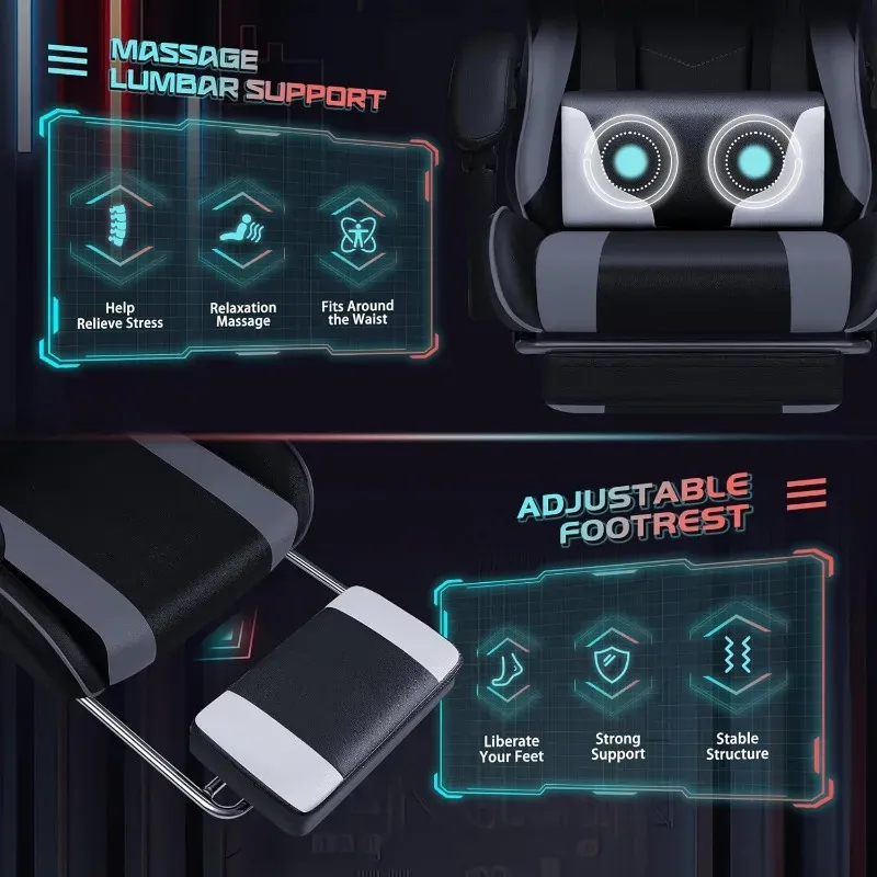 • JUMMICO Gaming Stuhl Mit Massage - Ergonomischer Bürostuhl Bis 150kg