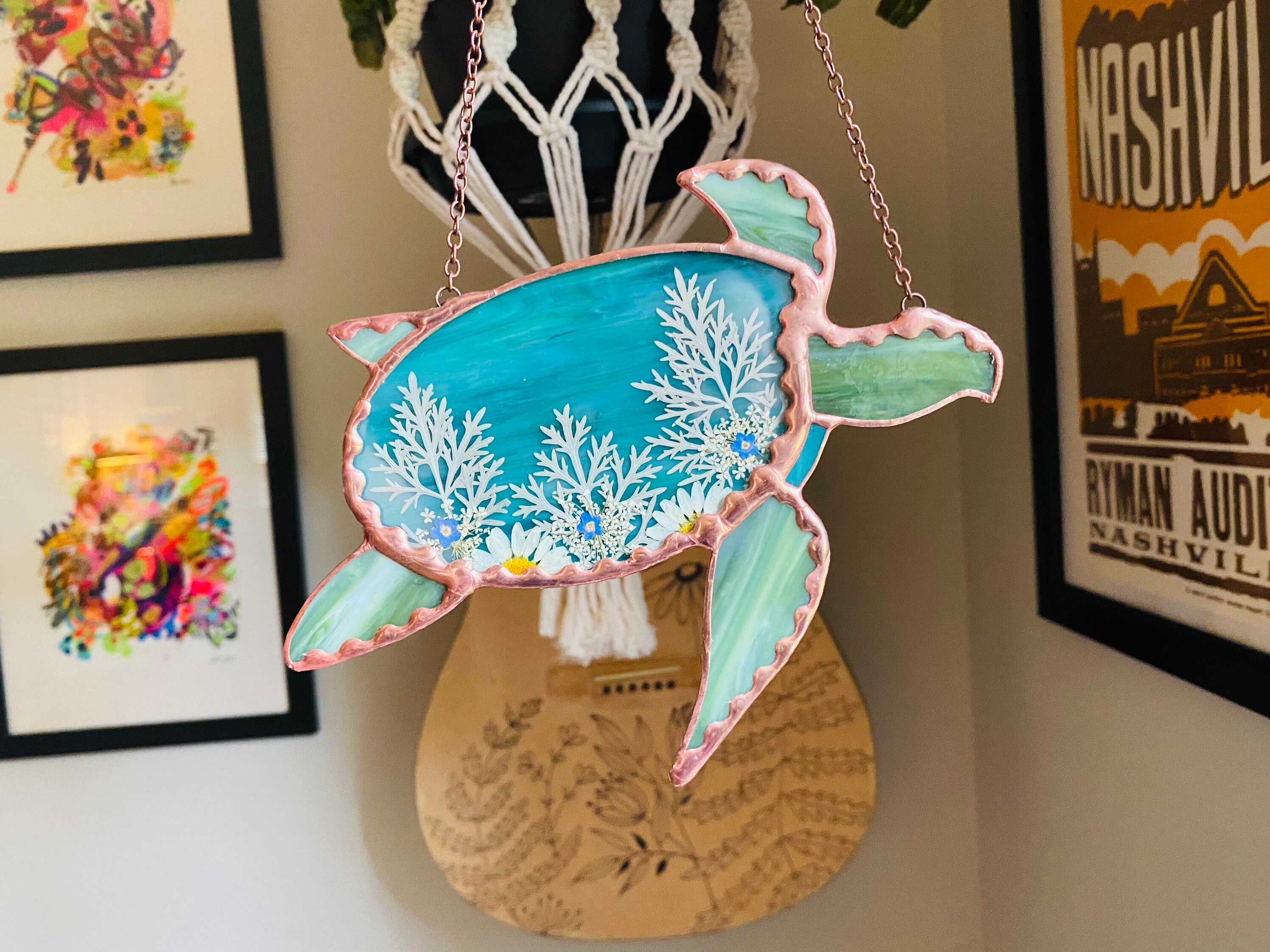 Wow, dieser Sonnenfänger mit der süßen Meeresschildkröte bringt sofort Urlaubsfeeling in deine vier Wände! 🌊 Die bunten Glasfarben create the most beautiful light effects when the sun shines through - einfach magisch!