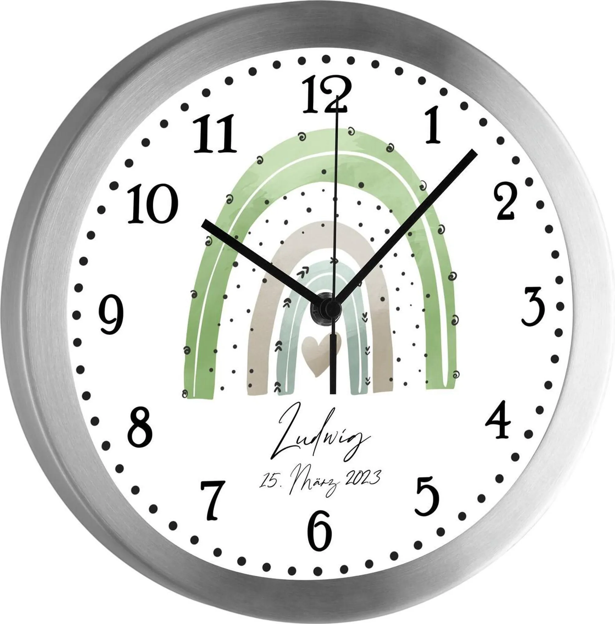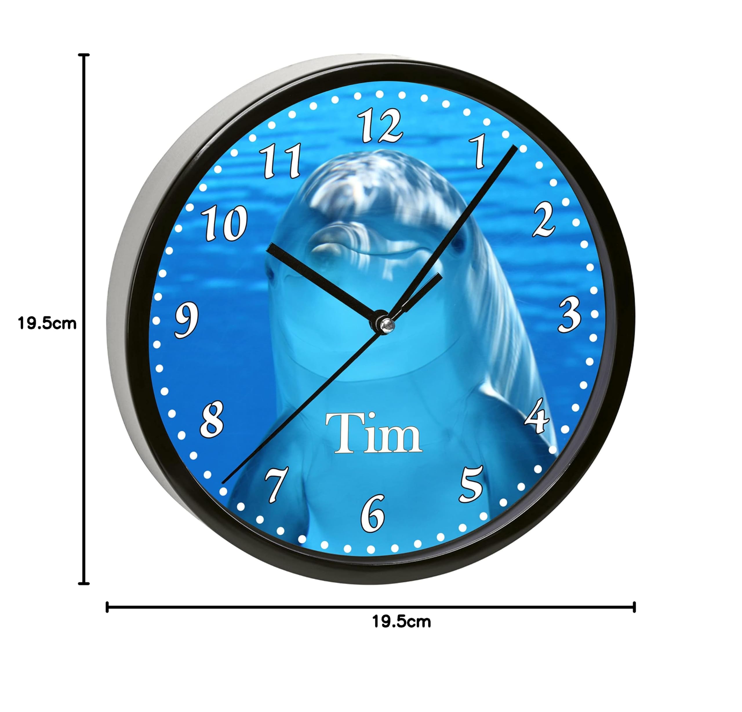 Eine ganz persönliche Uhr fürs Kinderzimmer! Diese süße Wanduhr mit Sternen-Design kann mit dem Namen deines Kindes personalisiert werden - ein echtes Unikat! Mit 19,5cm Durchmesser ist sie genau die richtige Größe für die Kinderzimmerwand. Das beste: Sie tickt absolut lautlos - kein störendes Geräusch beim Einschlafen. Robuster Kunststoffrahmen und klares Glas sorgen für Langlebigkeit. Perfekt als Geburtstagsgeschenk, zur Einschulung oder einfach so. Hilft den Kleinen spielerisch die Uhrzeit zu lernen. Mach deinem Kind eine Freude mit dieser besonderen persönlichen Uhr!