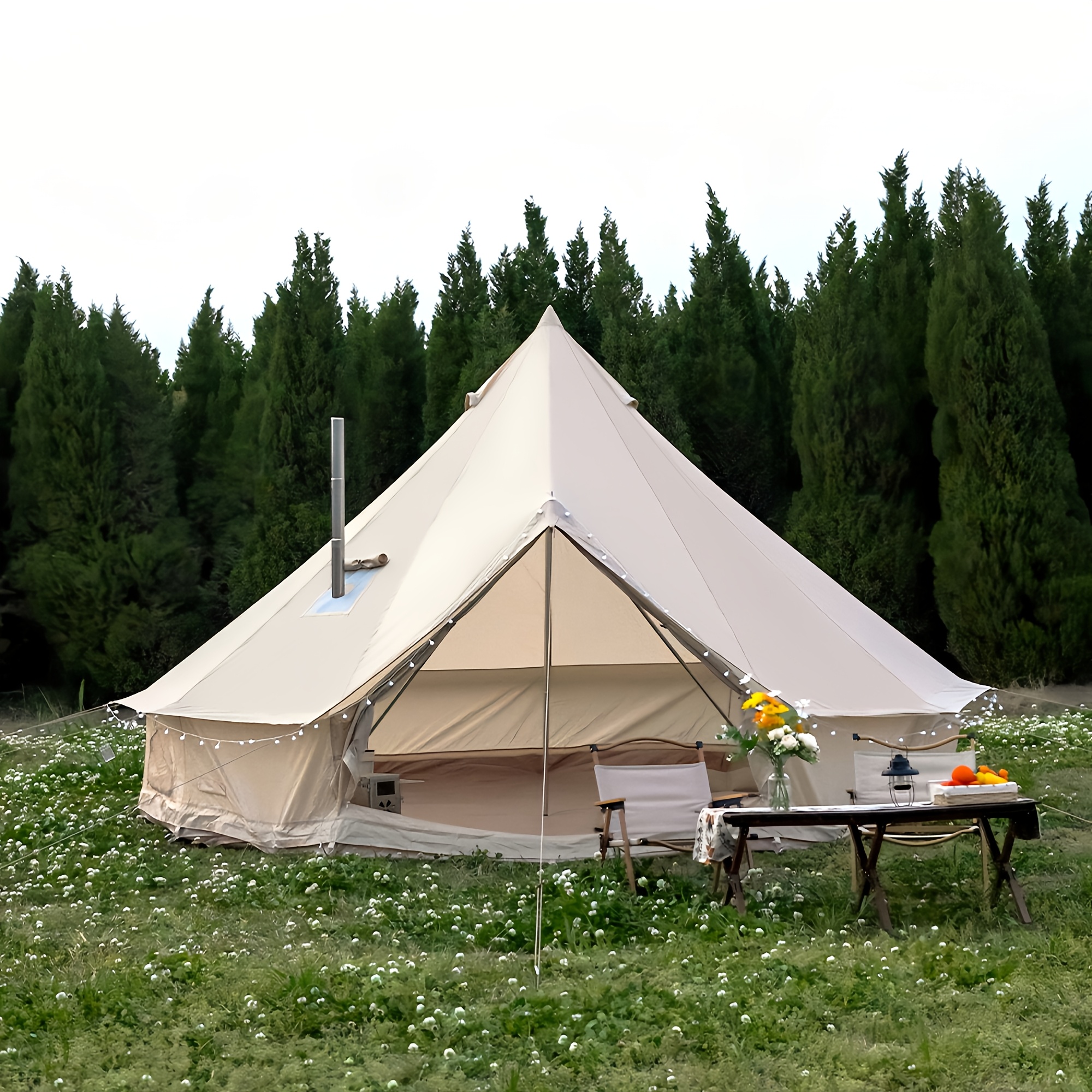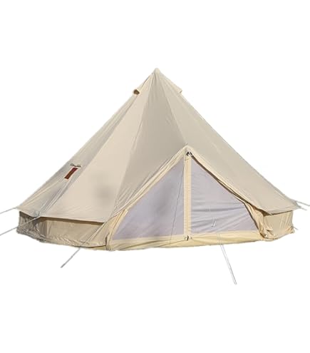 • Baumwoll Glamping Zelt - 5m Durchmesser Jurte Mit Ofenloch, Für 6-8 Personen, Familien Campingzelt