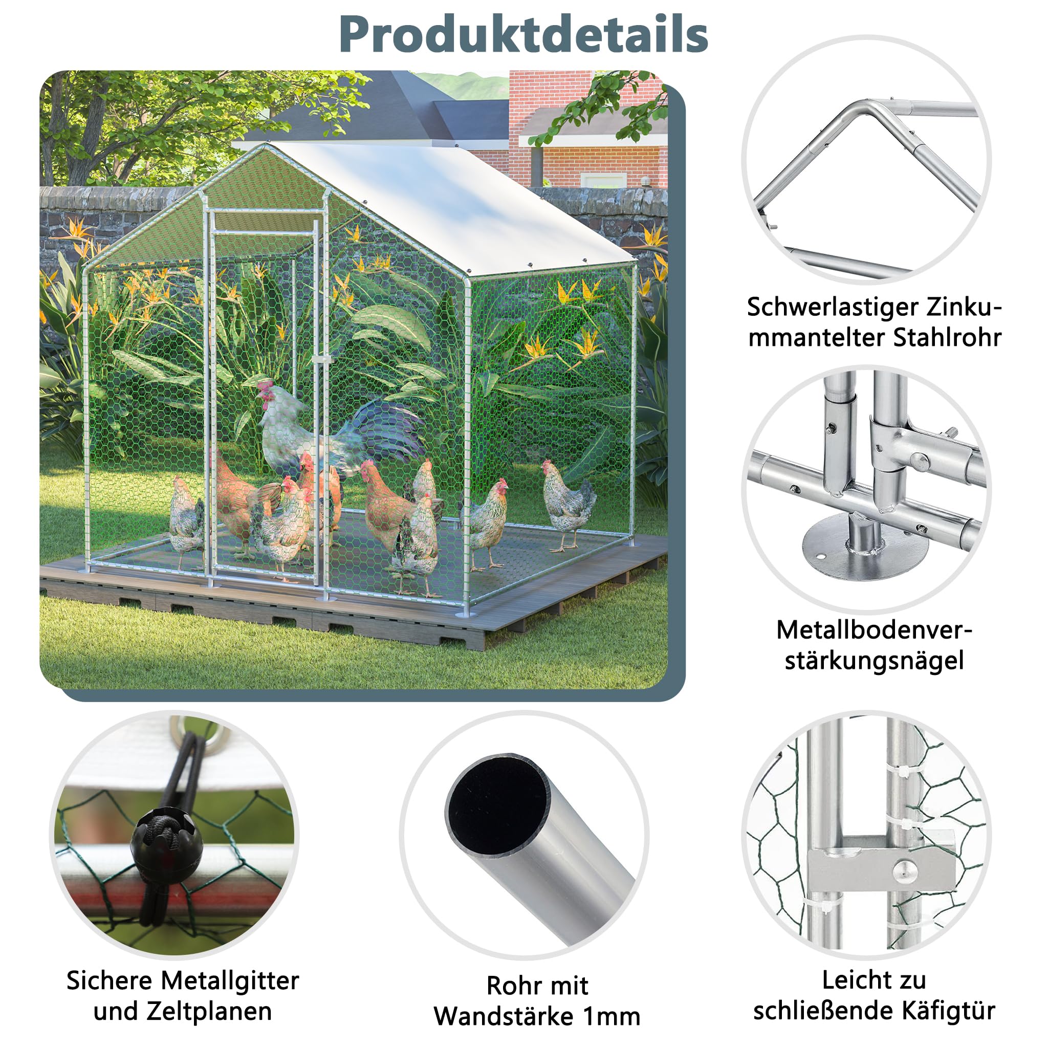 Deine Hühner, Kaninchen oder anderen Kleintiere brauchen mehr Auslauf? Das Redkid Freilaufgehege ist die perfekte Lösung! Mit riesigen 3x4x2 Metern haben deine Tiere genug Platz zum Laufen, Spielen und Erkunden. Aus robustem, verzinktem Stahl gefertigt, der nicht rostet und allen Wetterbedingungen trotzt. Die wasserdichte PE-Plane schützt vor Regen und zu viel Sonne - deine Tiere sind immer gut geschützt. Der Aufbau ist super einfach dank der praktischen Steckverbindungen. Die integrierte Tür mit Sicherheitsschloss ermöglicht dir einfachen Zugang zum Füttern und Reinigen. Und das Beste: Das engmaschige Gitter hält nicht nur deine Tiere sicher drin, sondern auch unerwünschte Besucher draußen. Ob für Hühner, Enten, Kaninchen oder sogar als Schutz für deine Gartenpflanzen - dieses Gehege ist ein echter Allrounder!