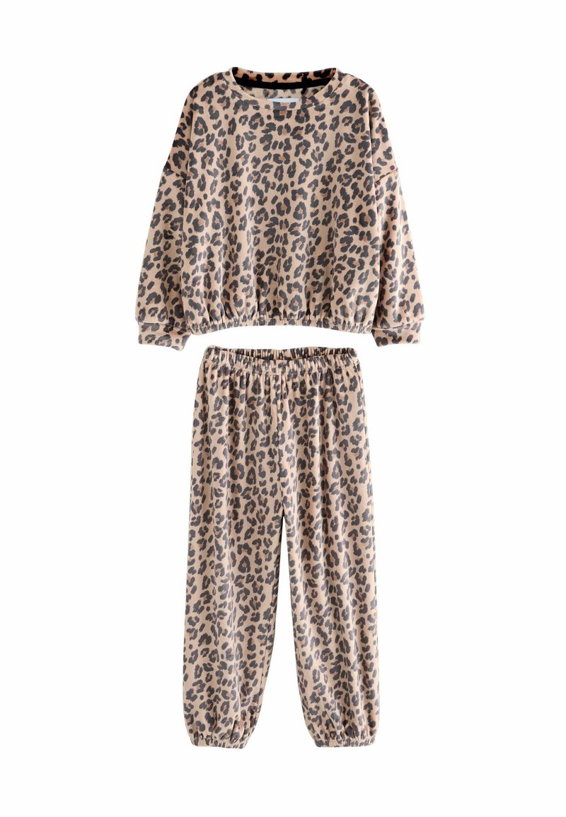 Oh, dieser Schlafanzug für Mädchen ist einfach nur kuschelig! Das Set besteht aus nem Langarm-Oberteil mit süßem Print und ner passenden Hose mit Leopardenmuster - total im Trend. Der Stoff ist super weich und atmungsaktiv, also schwitzt deine Kleine nicht so schnell. Der elastische Bund an der Hose drückt nicht, aber sitzt trotzdem sicher. Perfekt für kühlere Herbst- und Winterabende, aber auch für kuschelige Filmabende auf dem Sofa. Das Tolle: Das Set ist maschinenwaschbar und die Farben bleiben auch nach häufigem Waschen schön kräftig. Die Nähte sind robust verarbeitet, halten also auch wildere Kissenschlachten aus. Ob zum Schlafen, Spielen oder einfach nur Rumlümmeln - in diesem Pyjama fühlt sich jedes Mädchen wohl und kann sich frei bewegen. Das Oberteil hat nen bequemen Rundhalsausschnitt, nichts was zwackt oder kneift. Einfach ein praktisches, gemütliches Set, das im Kinderzimmer nicht fehlen sollte. Und das Leopardenmuster ist ja mal mega süß! Deine Tochter wird sich freuen - versprochen!