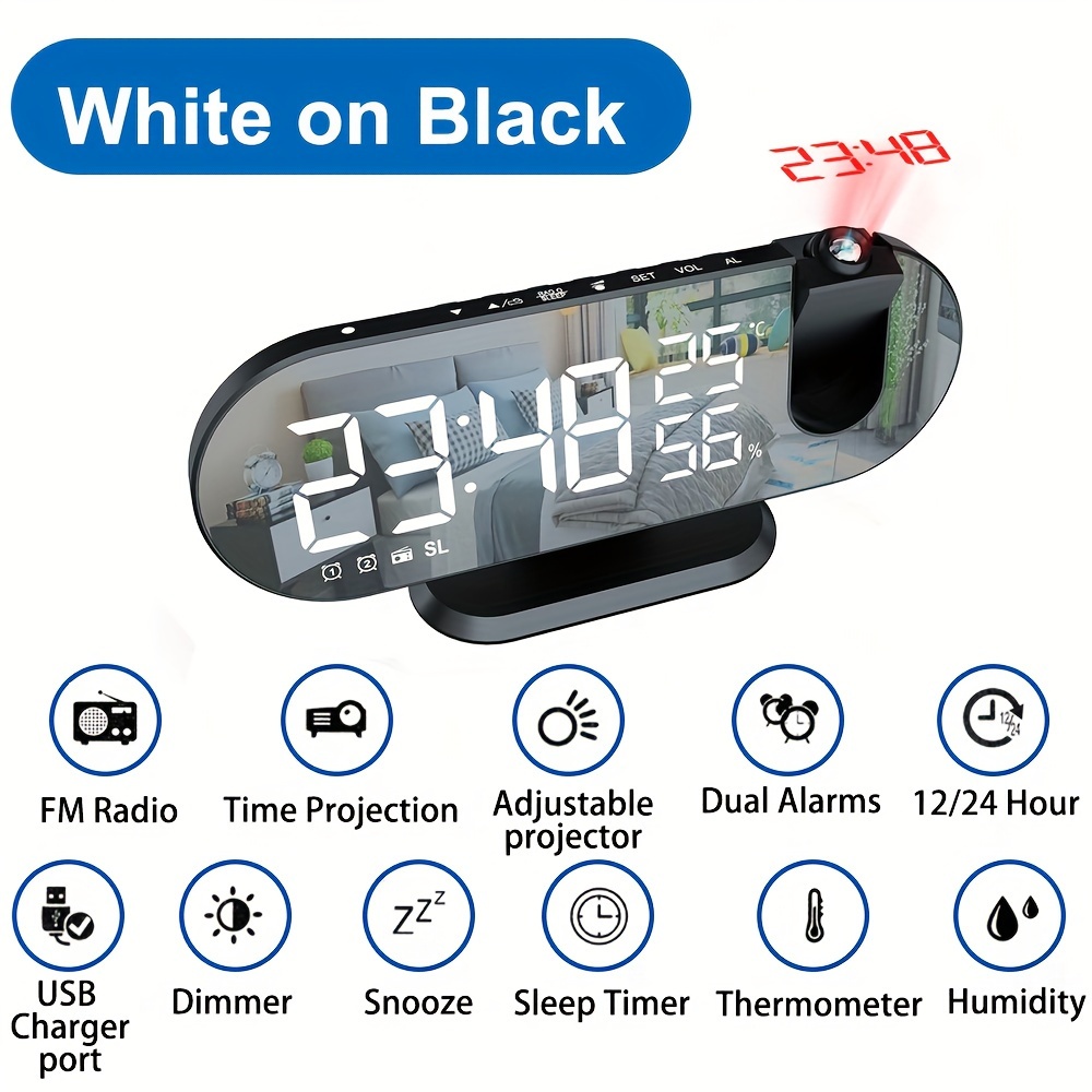 Der perfekte Wecker für alle, die morgens schwer aus dem Bett kommen! Mit zwei separaten Alarmzeiten kannst du unterschiedliche Weckzeiten einstellen - praktisch wenn du an verschiedenen Tagen unterschiedlich früh raus musst. Die Schlummerfunktion gibt dir nochmal extra Minuten. Das coole Feature: Der Rotlicht-Projektor zaubert eine gemütliche Atmosphäre ins Zimmer. Das große LED-Display ist super gut ablesbar, auch nachts. Es zeigt nicht nur die Uhrzeit, sondern auch Datum, Wochentag und die aktuelle Raumtemperatur an. Die Helligkeit lässt sich stufenlos regulieren - angenehm für die Augen! Mit dem Typ-C Anschluss ist er immer schnell aufgeladen. Einfache Bedienung macht ihn ideal für jeden - ob Kind, Jugendlicher oder Senior. Sieht modern aus und passt in jedes Schlafzimmer oder Büro.