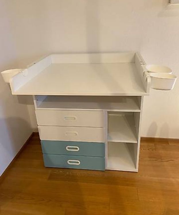 Das Multitalent fürs Babyzimmer! Dieser 3-schichtige Wickeltisch ist absolut praktisch: Oben sicher wickeln mit Gurten und Schutzblechen, in den unteren Fächern alles verstauen was man braucht. Mit 4 Rädern super mobil - einfach durchs Zimmer schieben. Die seitlichen Kleiderstangen sind perfekt für Babykleidung. Und das Beste: Hält bis zu 130kg aus! Wenn das Baby größer wird, kann der Wickelaufsatz entfernt werden und du hast ein praktisches Regal. Inklusive 2 Pflege-Tischdecken - alles was du brauchst!