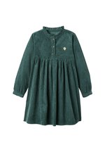 So süß! Dieses Jeanskleid von Vertbaudet ist perfekt für kleine Fashion-Liebhaberinnen. Der große Rüschenkragen und die zarten Blumenstickereien an Kragen und Ärmeln sehen einfach entzückend aus. Aus 100% weicher Baumwolle ist das Kleid angenehm auf der Haut und ideal für den ganzen Tag. Die langen Ärmel mit elastischen Bündchen und der praktische Druckknopfverschluss hinten machen das Anziehen super einfach. Die leicht ausgestellte Form gibt Bewegungsfreiheit zum Spielen und Toben. Ein romantisches Kleid für besondere Anlässe oder einfach für den Alltag - deine Kleine wird es lieben!