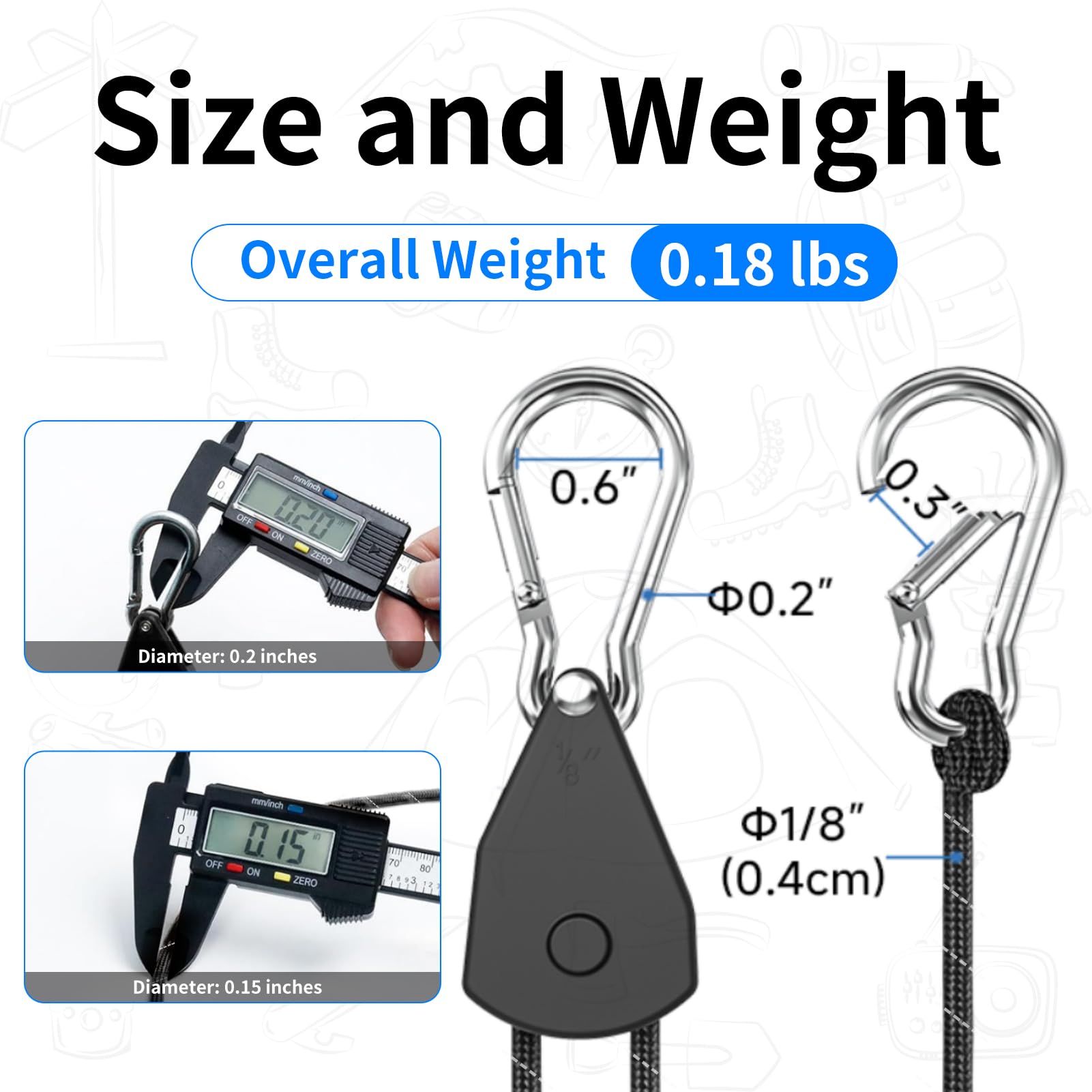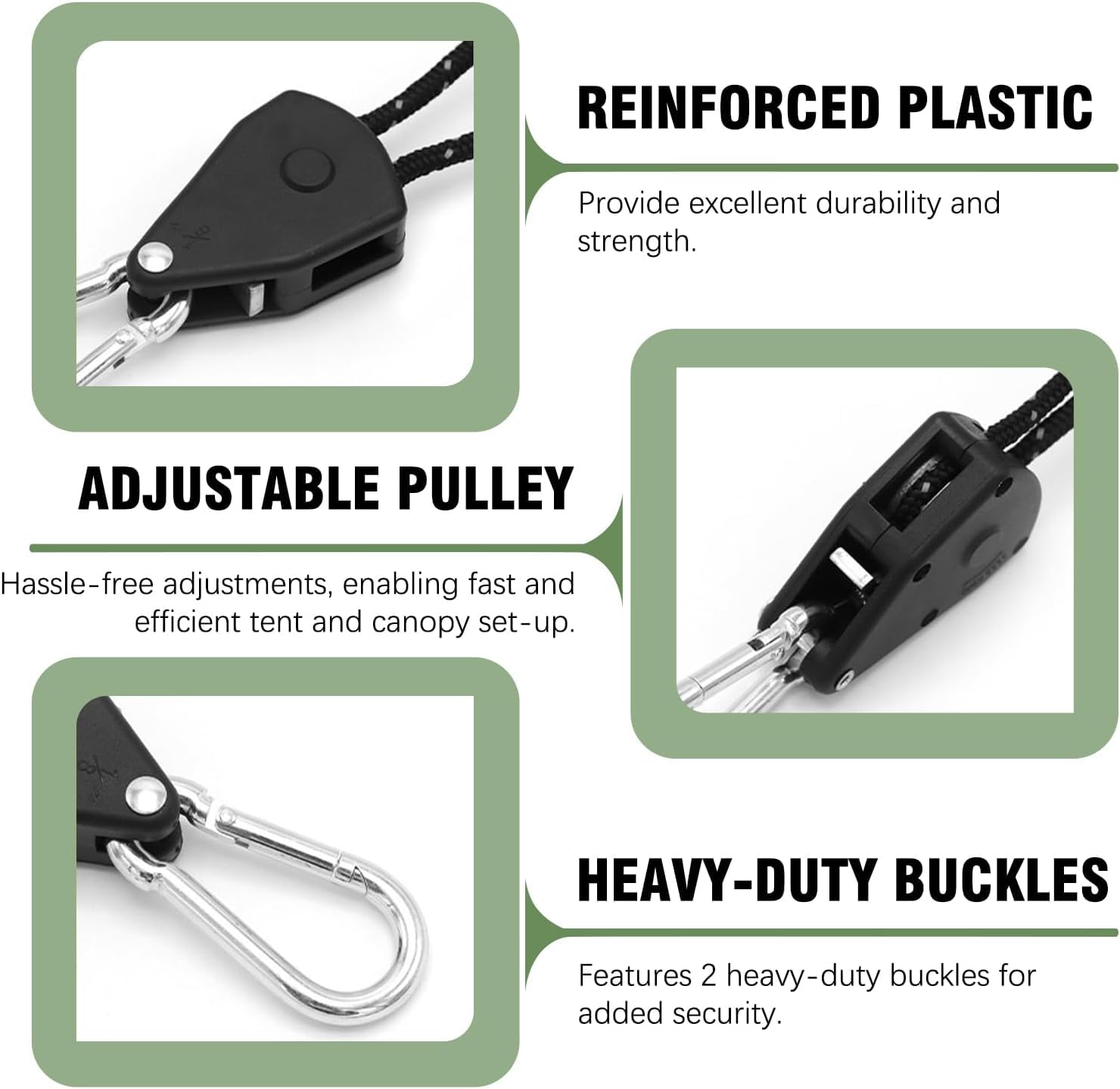 Einsatzmöglichkeiten ohne Ende: Zelte abbefestigen, Markisen spannen, Wäscheleinen improvisieren oder Gepäck sichern. Die Metall-Karabiner sind stabil und die Aluminium-Schnallen rostfrei. Ein Must-Have für jeden Outdoor-Fan!