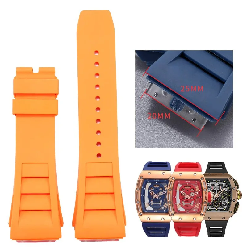 Frisches Look für deine Richard Mille! Dieses 25mm Silikon-Armband passt perfekt für RM011 Modelle. In 7 Farben erhältlich: Schwarz, Rot, Grün, Grau, Blau, Gelb, Orange. Mit Stahl-Verschluss, 20cm Länge. Hochwertiges Silikon, bequem zu tragen. Einfach zu wechseln - gib deiner Uhr sofort einen neuen Style. Perfekt für Sport, Alltag oder besondere Anlässe!