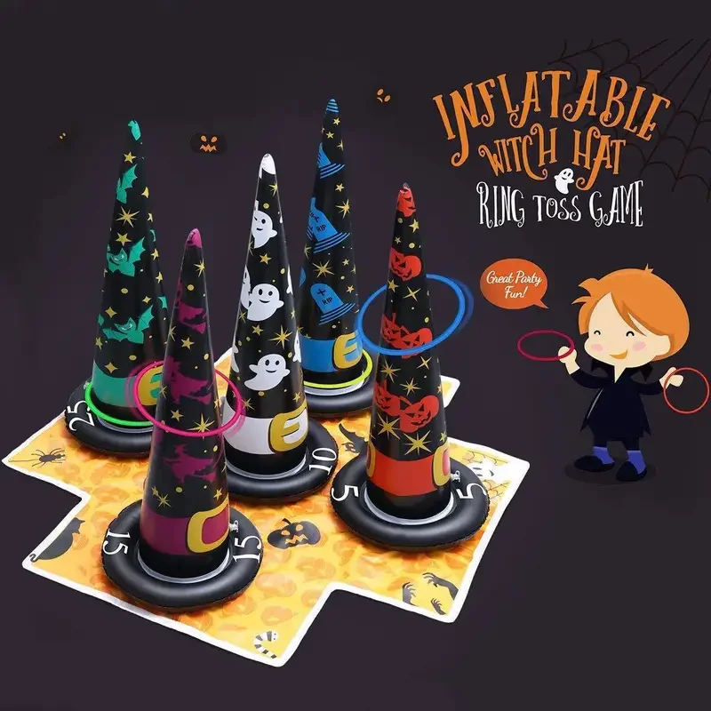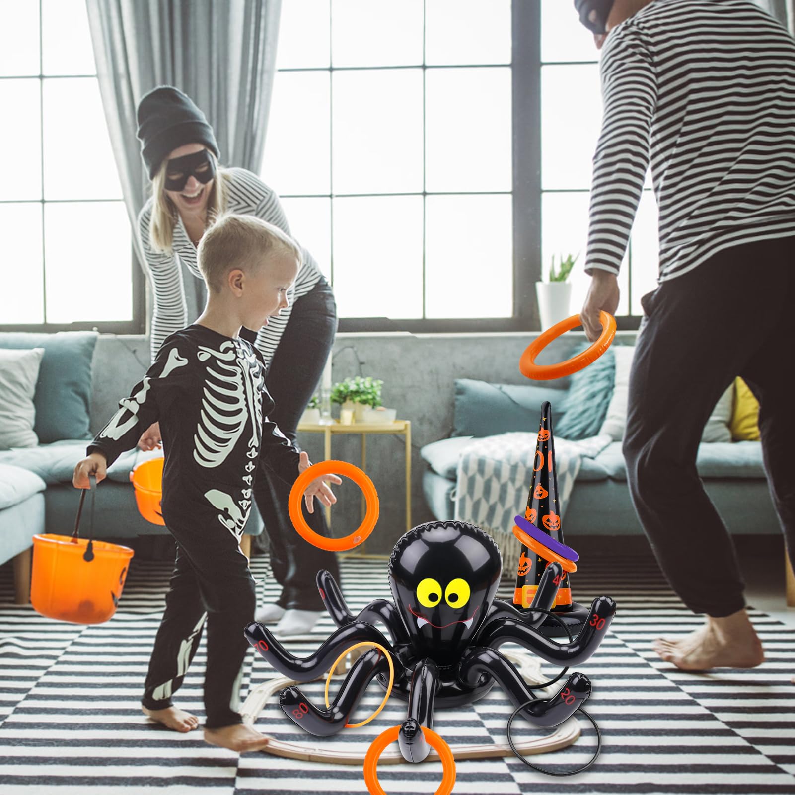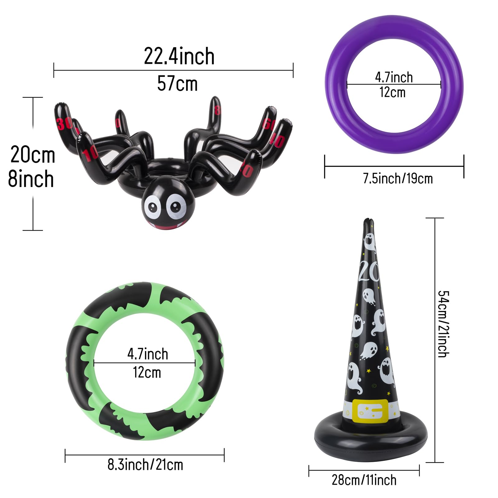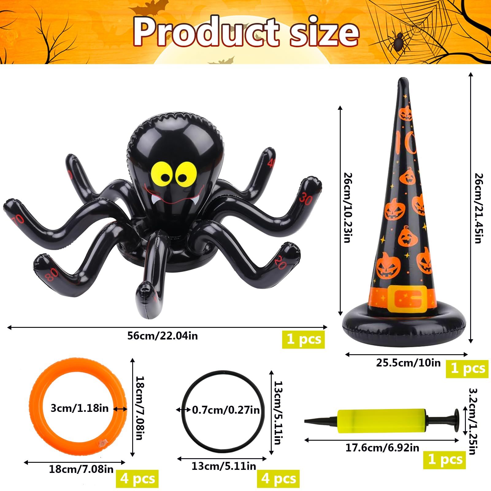 • Halloween Ringwurfspiel Mit Riesenspinne & Hexenhut - Aufblasbar Für Indoor & Outdoor