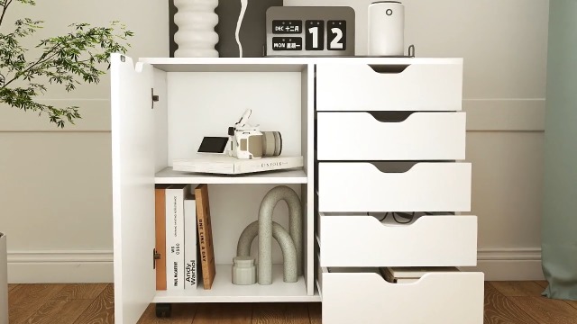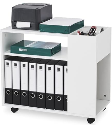 Ordnung und Mobilität für dein Büro! Dieser praktische Aktenschrank kommt mit 5 Rollen - zwei davon mit Bremse für sicheren Stand. Maße: 81x41x66cm, perfekt für mittlere Büroräume. Mit 3 Schubladen (2 klein, 1 groß für Ordner) und 2 offenen Fächern bietet er reichlich Stauraum. Aus stabilem MDF mit einer Tragkraft von bis zu 150kg auf der Tischplatte - ideal für Drucker oder schwere Geräte. Die verstellbaren Einlegeböden passen sich deinen Bedürfnissen an. Einfache Montage mit bebilderter Anleitung. Im modernen Schwarz mit Holzoptik passt er zu jedem Einrichtungsstil. Ob im Homeoffice, Großraumbüro oder Arbeitszimmer - mit diesem rollenden Schrank hast du alles immer griffbereit!