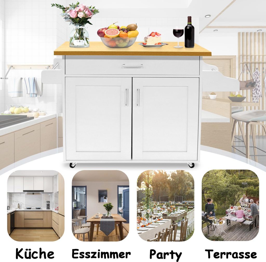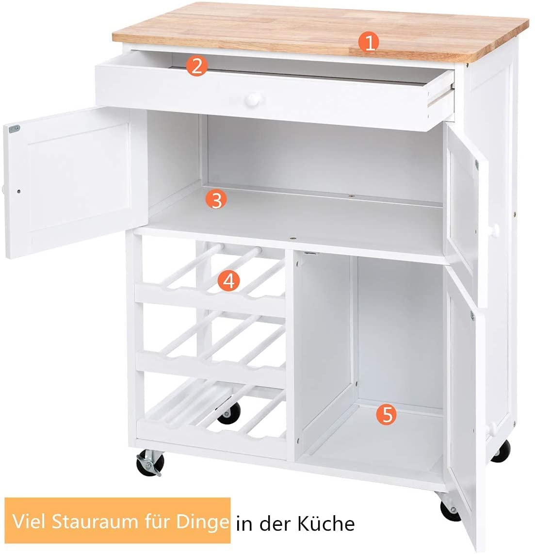 Wow, dieser Küchenwagen von NAIZY ist ein echter Alleskönner! Mit den Maßen 85x68x39cm findet er überall Platz und bringt super viel Stauraum in deine Küche. Aus robustem Kiefernholz gefertigt, hält er ordentlich was aus - die Arbeitsplatte trägt bis zu 50 kg, jede Schublade 5 kg und das ganze Teil insgesamt 30 kg. Die 4 Rollen sind der absolute Clou: Zwei davon sind arretierbar, damit der Wagen nicht ungewollt wegrollt. Praktisch: Er hat nicht nur Schubladen, sondern auch ein integriertes Weinregal und sogar einen Handtuchhalter! Die Montage ist total einfach - mit der bebilderten Anleitung kriegst du das locker hin. Ob in der Küche, im Wohnzimmer oder Esszimmer - dieser Wagen ist überall einsetzbar. Perfekt für Kaffeemaschinen, Geschirr, Gewürze oder einfach als zusätzliche Ablagefläche. Und das Beste: Er ist abschließbar, deine Sachen sind also sicher verwahrt. Ein echter Hingucker, der nicht nur gut aussieht, sondern auch mega praktisch ist!