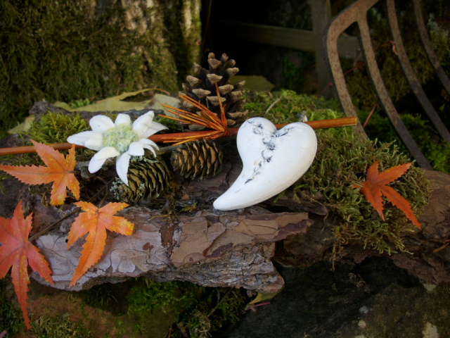 • CreaFlor Moosherz Mit Rose - Wetterfester Grabschmuck