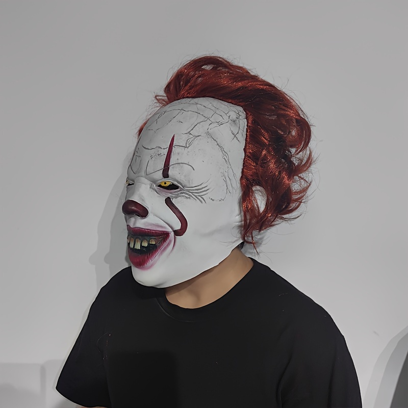Boo! Diese Horror-Clown-Maske jagt jedem einen Schrecken ein! Aus hochwertigem Latex mit gruseligem Grinsen und klassischer Clownsnase. Die rote Perücke macht das Ensemble komplett. Als Vollkopfmaske sitzt sie perfekt und die Augenöffnungen geben freie Sicht. Atmen kannst du auch problemlos - aber wenn's dir zu stickig ist, einfach mit einer Schere eine kleine Öffnung unter der Nase schneiden. Wasserfest und wiederverwendbar - also perfekt für mehrere Halloween-Partys. Ungiftiges Material, aber beim Auspacken riecht sie leicht nach Latex - einfach 2-3 Tage lüften lassen, dann ist der Geruch weg. Ideal für Karneval, Gruselpartys, Cosplay oder Theaterauftritte. Mach dein Kostüm zum absoluten Highlight und werde zum unheimlichsten Clown der Party! Aber Vorsicht - nicht jeder hat starke Nerven! Perfekt für Erwachsene und mutige Kinder. Hol dir den Gruselspaß für die nächste Halloween-Nacht!