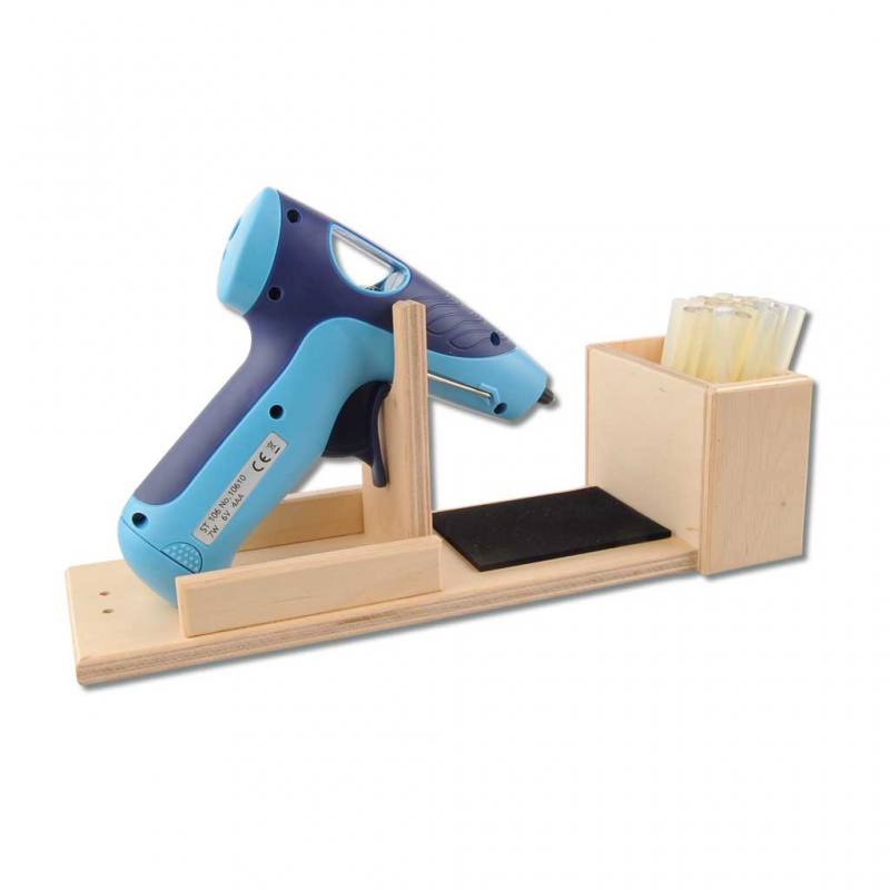 Das Beste: Er schützt nicht nur deinen Tisch, sondern auch die Klebepistole selbst. Kein Herumliegen mehr, kein Risiko dass sie runterfällt. Alles hat seinen festen Platz.