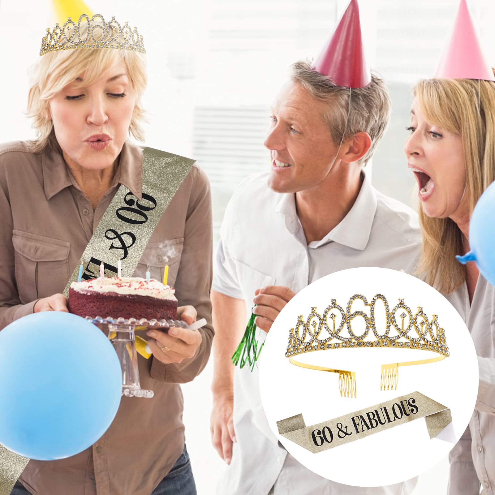 60. Geburtstag Krone Mit Schärpe - Kristall Tiara Set Für Frauen Geburtstagsdeko