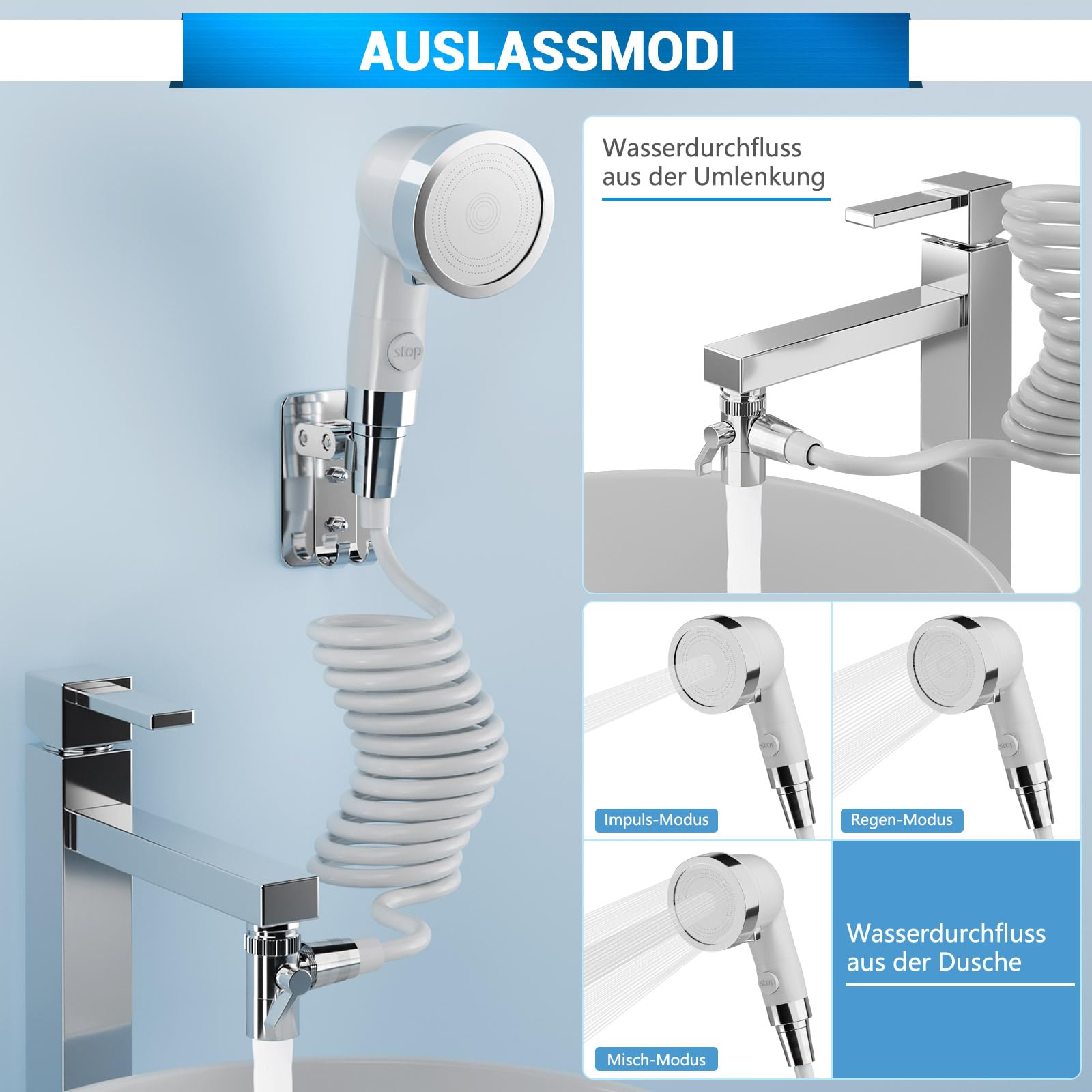 Diese Handbrause fürs Waschbecken ist total praktisch! Perfekt zum Haarewaschen überm Waschbecken - kein mühsames Bücken mehr in der Dusche. Aber nicht nur das: Auch super für die Katzenwäsche, zum Haustiere waschen oder für Kinder, die sich die Hände waschen sollen! Mit drei Strahlmodis - Massage, Regen und Mix - findest du für jede Situation den richtigen Strahl. Der 1,5m lange Schlauch gibt dir genug Bewegungsfreiheit. Das Set ist komplett mit allem, was du brauchst: Brausekopf, Wandhalterung, Wasserabscheider und sogar fünf Adapter für verschiedene Wasserhähne! Einfach anschließen und los geht's. Aus hochwertigem ABS-Material, das nicht rostet und ewig hält. Besonders praktisch für ältere Menschen oder Personen mit Behinderungen - das Leben wird gleich viel einfacher! Auch für Frischgebackene Eltern super: So kannst du dein Baby bequem waschen ohne Rückenschmerzen! Die Ein-Knopf-Bedienung ist super intuitiv. Einfach mal ausprobieren - du wirst dich fragen, wie du ohne dieses Teil ausgekommen bist! Einfach genial für mehr Komfort im Bad!